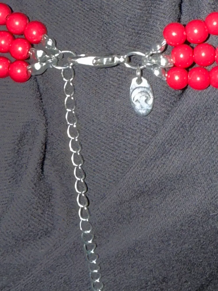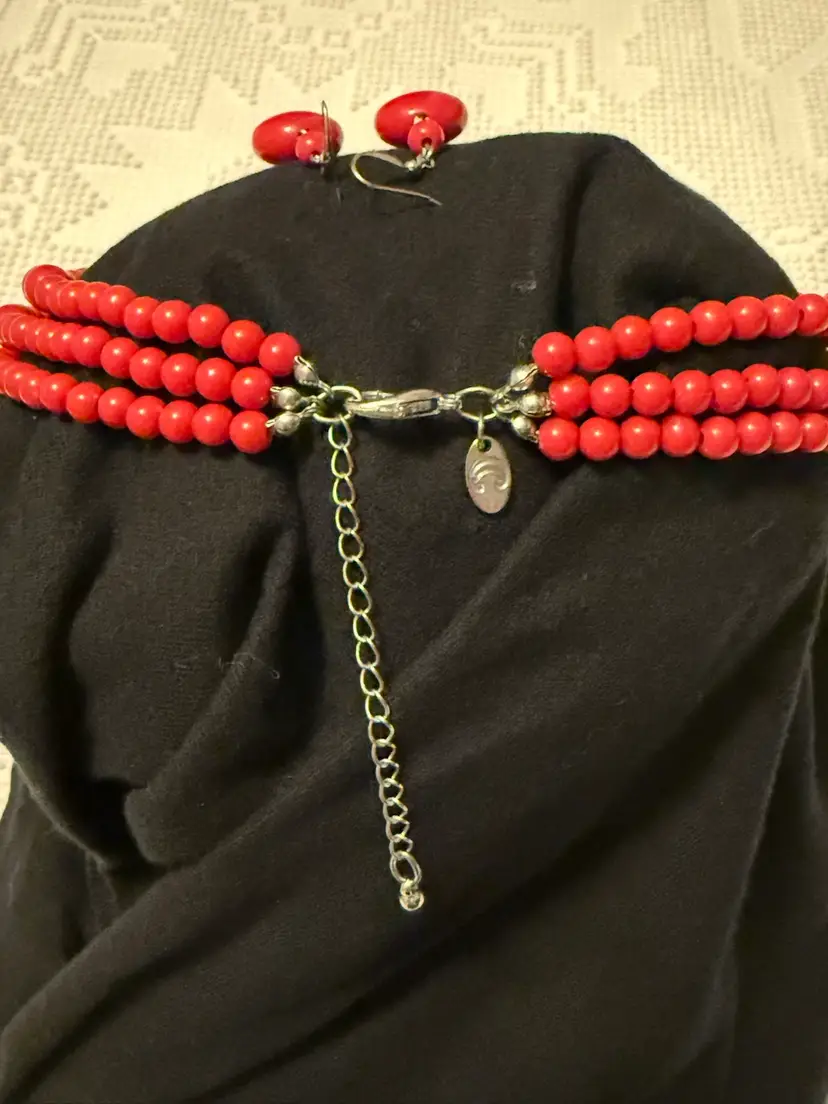 Necklace is 18” with a 3” extender and the 3 strands are 2” Earrings are light and approx 2” dangle.