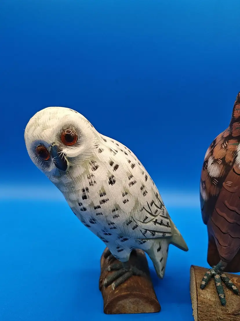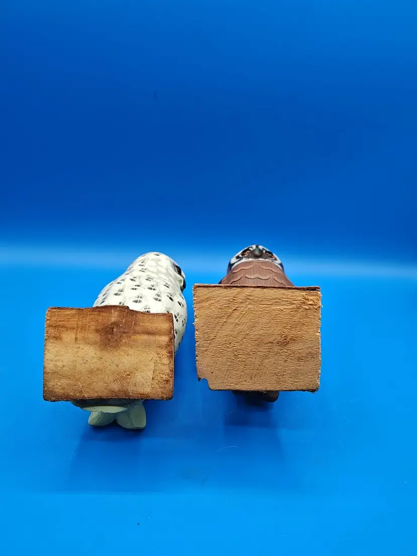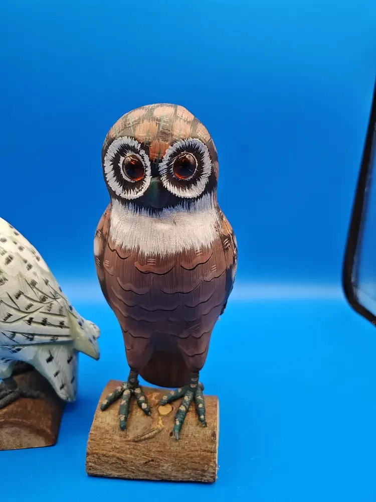 Add a touch of woodland charm to your decor with this delightful pair of vintage hand-carved wooden owl figurines. Each owl boasts intricate detailing and a unique personality, making them a perfect addition for collectors or as a quaint accent in your home. They are in great condition with no significant wear. Please make sure to check all the photos and ask any questions you may have. Thank you for shopping at my store janybany2U. Have a wonderful day!