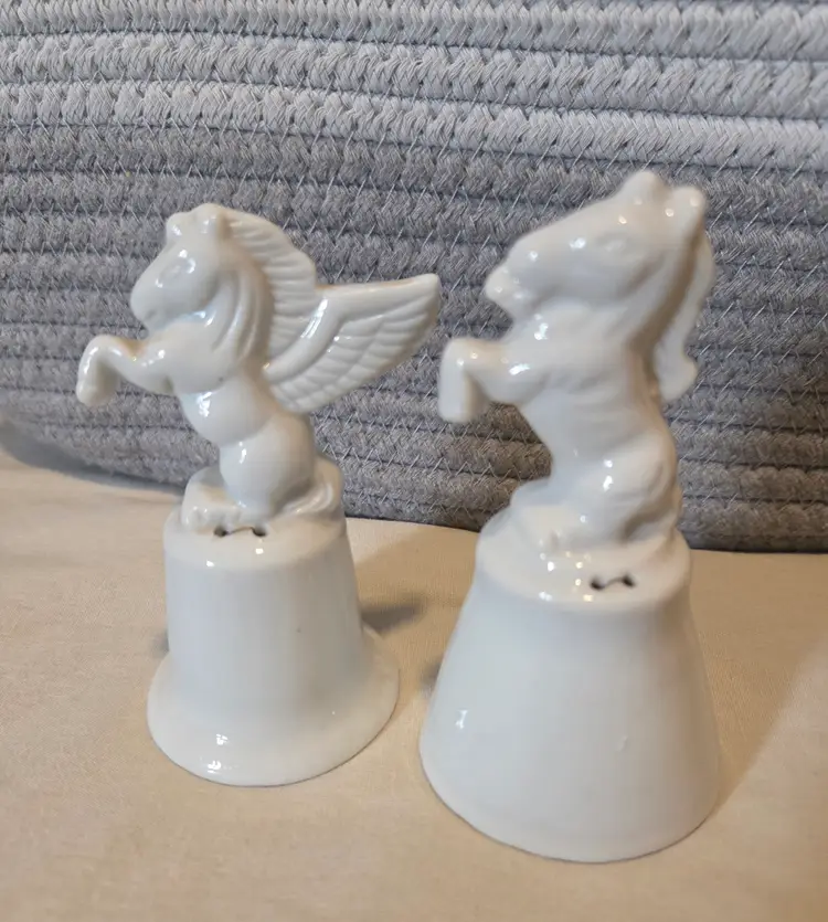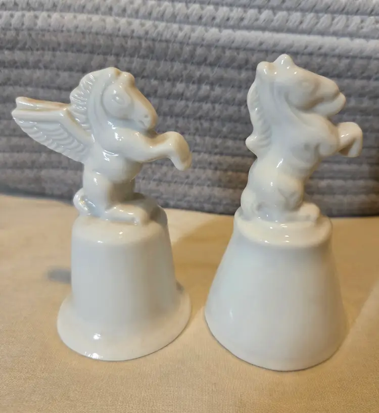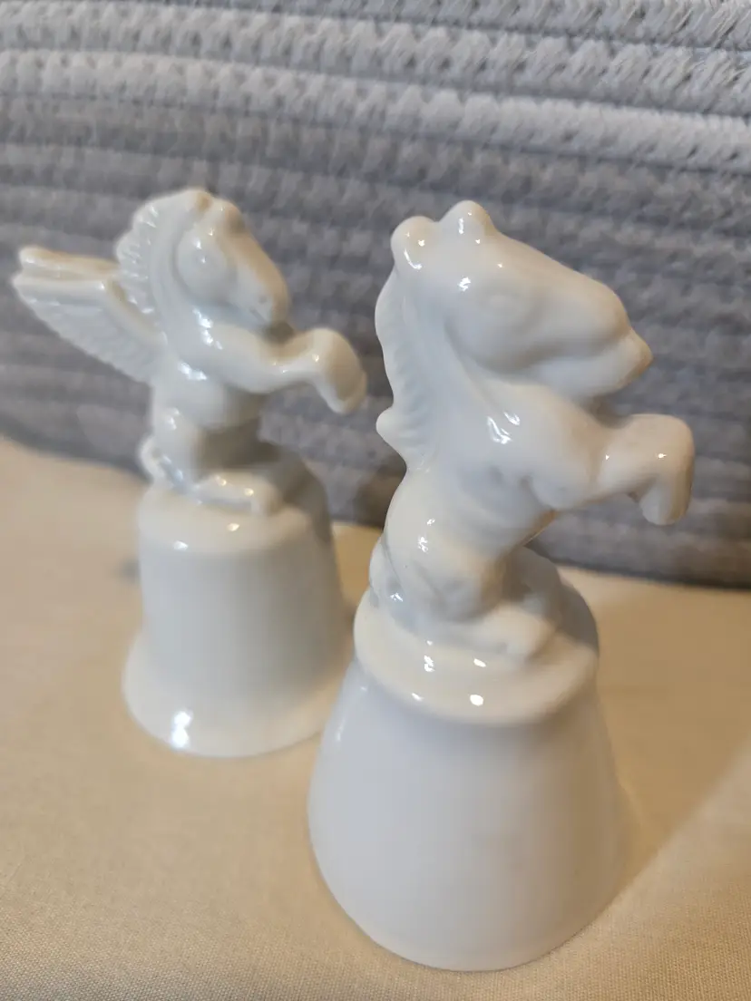 Add a whimsical touch to your collection with these charming ceramic bells featuring a Pegasus and a Unicorn. Perfect for display or as a unique gift for fantasy lovers.
