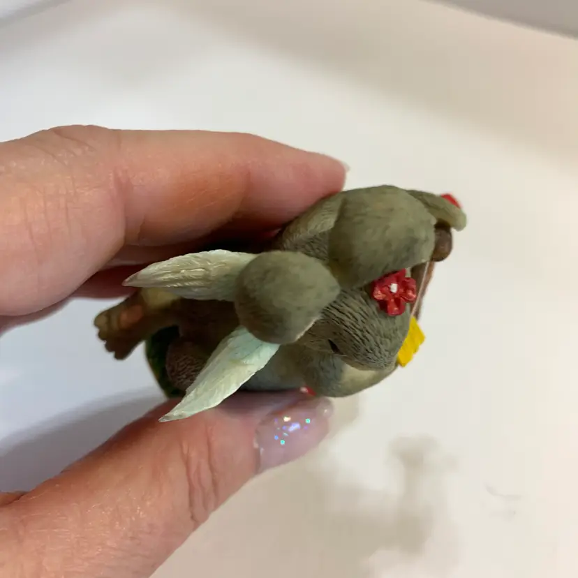 Just too cute!! No chips or cracks. Measures 2 3/4 inches across, 1 7/8 inches wide and 3 1/4 inches tall. Weighs 3 ounces. If the actual postage ends up being less than what you paid, you will be refunded for anything over one dollar.
