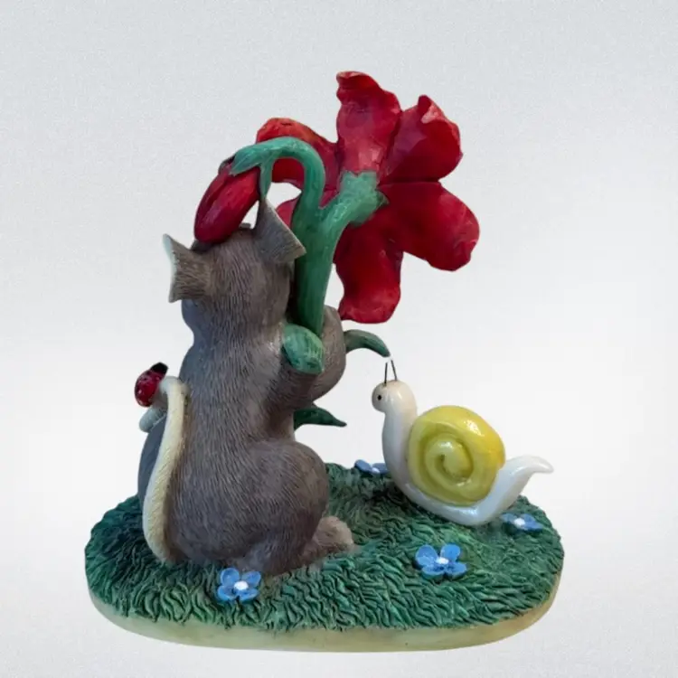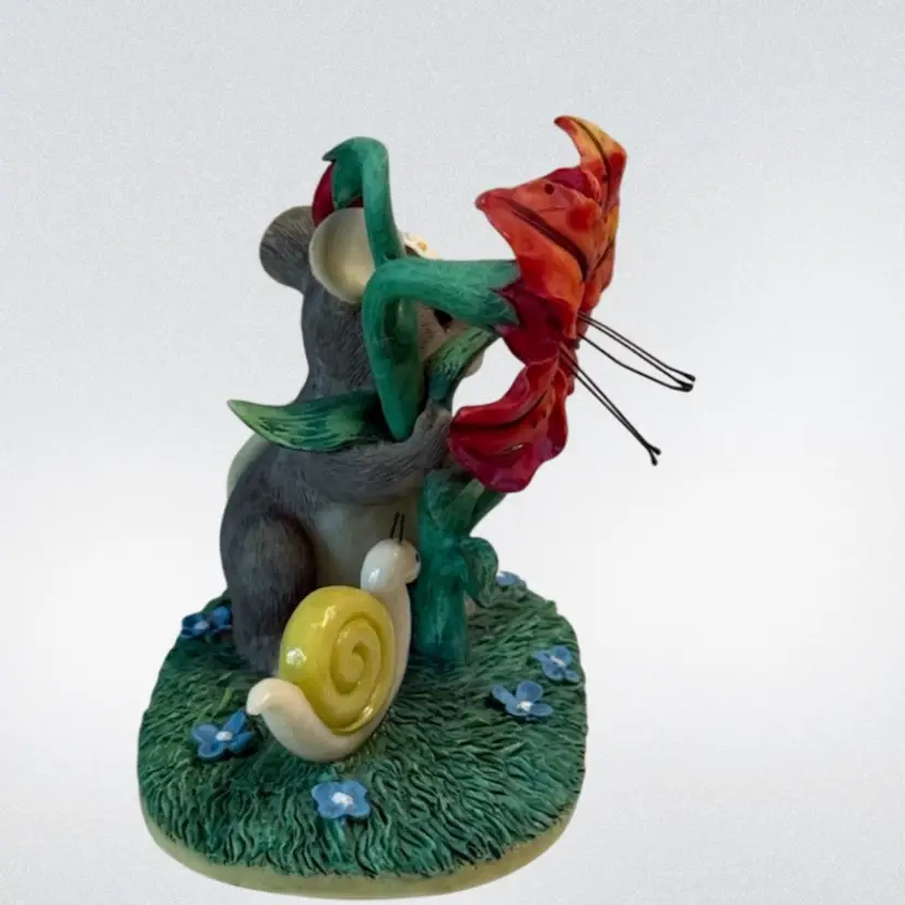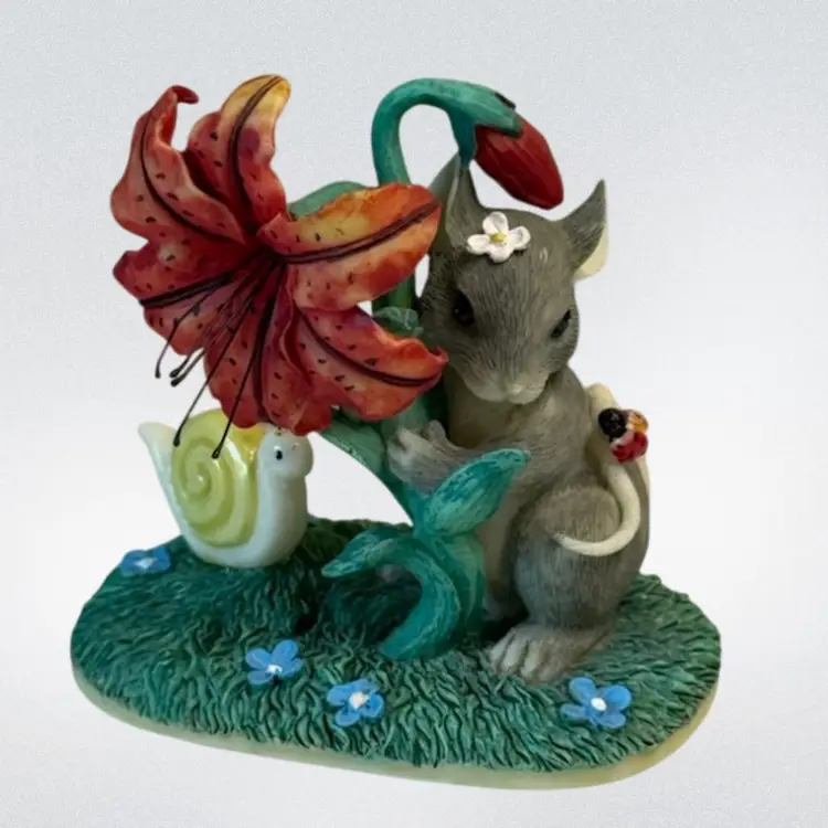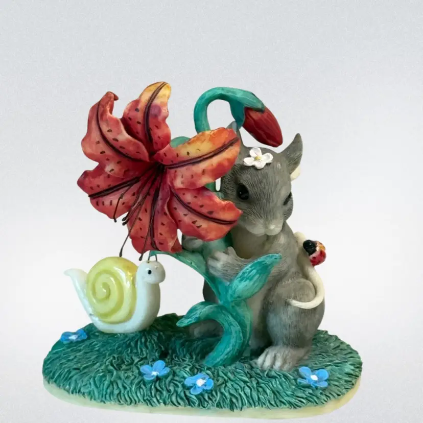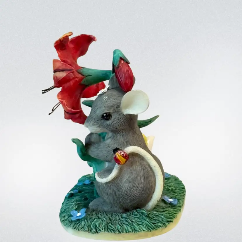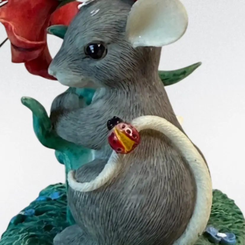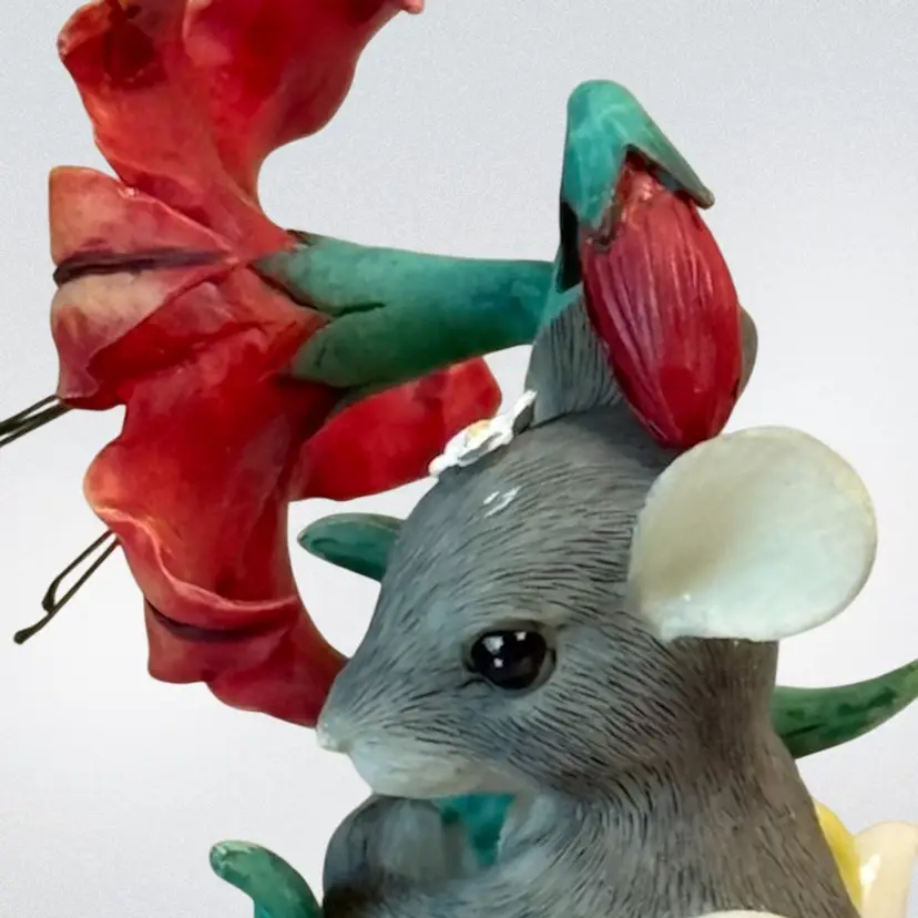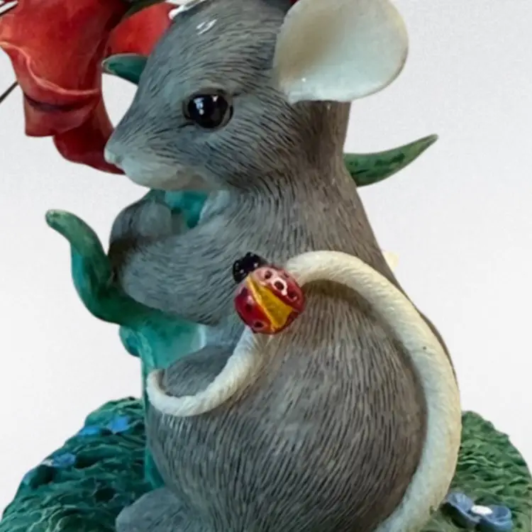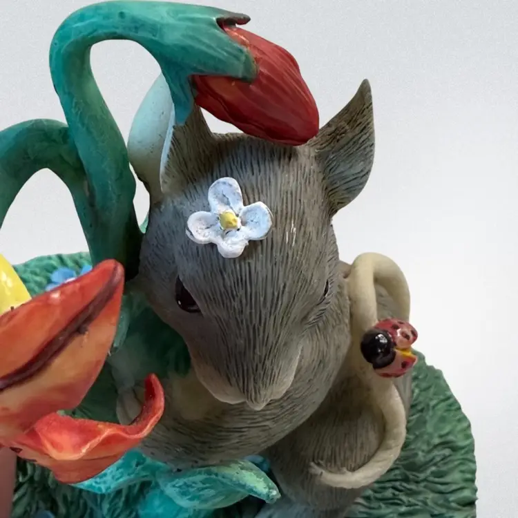 Whimsical resin mouse figurine. Condition: Small spot on top of mouse’s head with paint loss. No other condition issues noted: Measurements are approximate. S2-5 Thank you for looking!