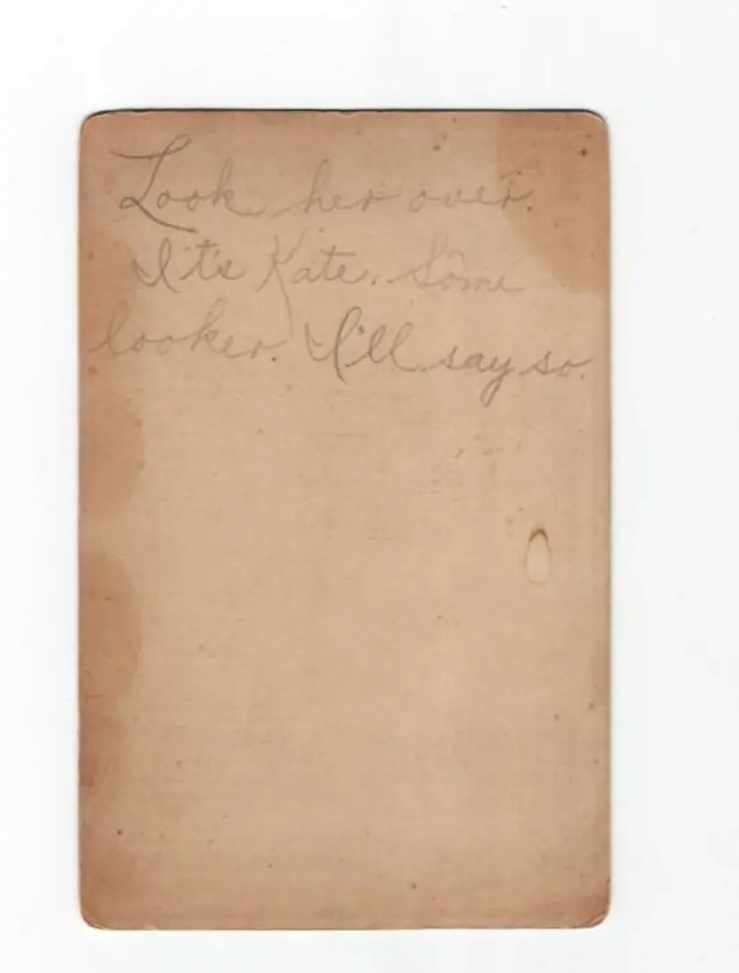 At a later date someone wrote on back " Look her over It's Kate, some looker. I'll say so"