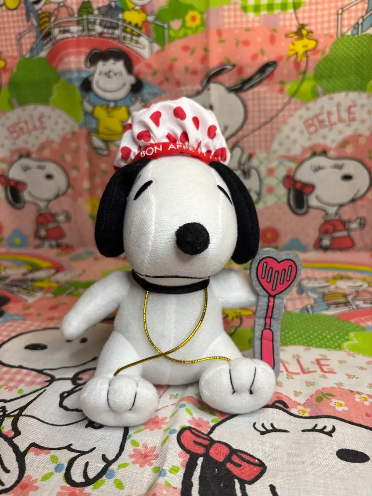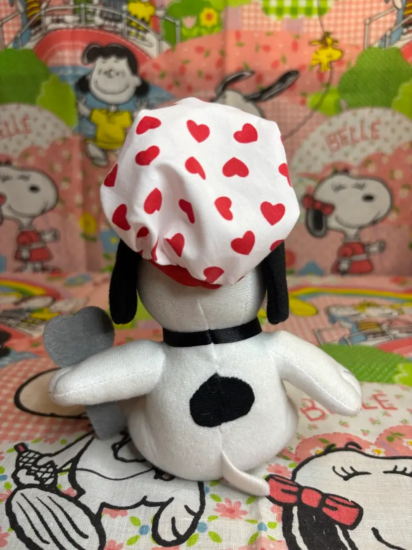 Newer Snoopy plush made for Russell Stover Chocolates in 2019. This one is wearing a chef’s hat that says “bon appétit” and is holding a heart-shaped spatula. Would be a super cute addition to any collection!