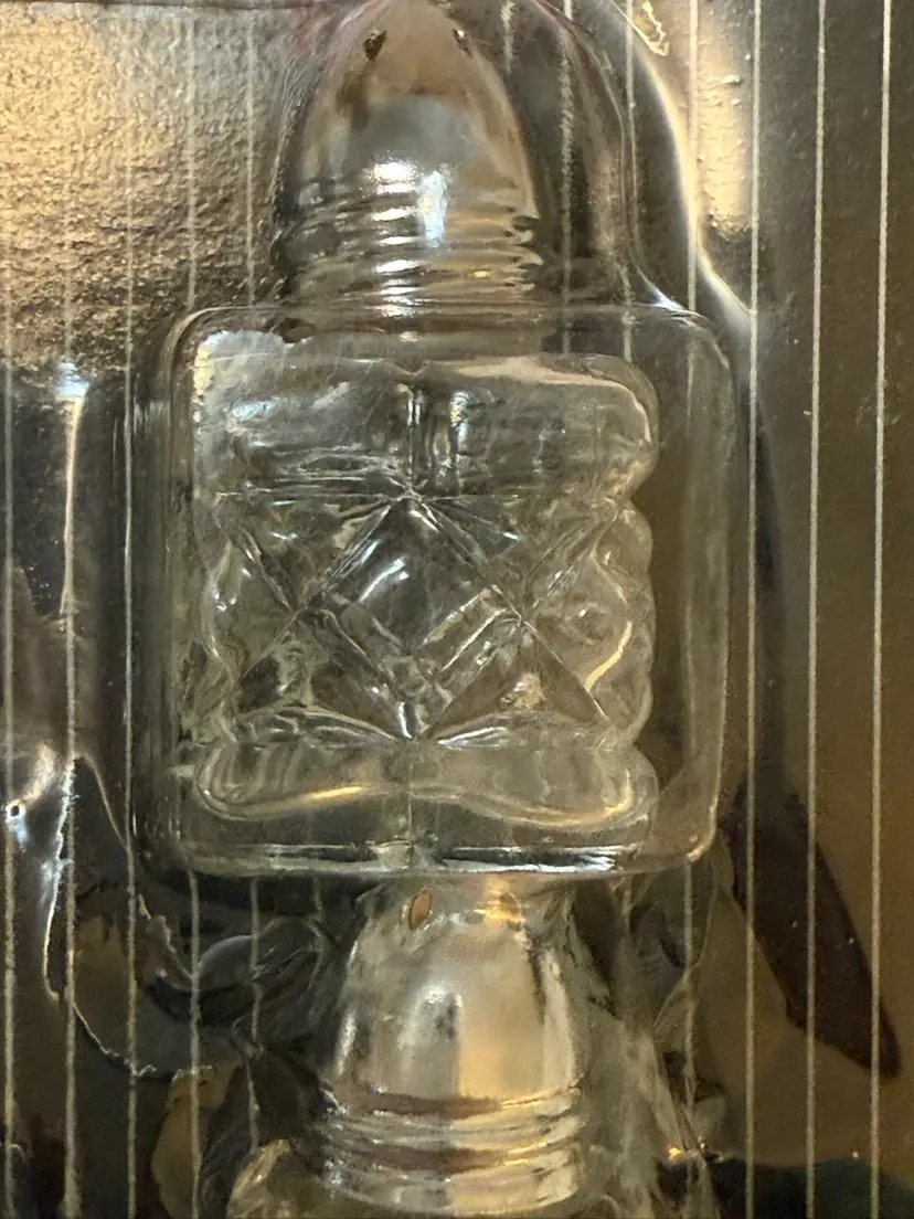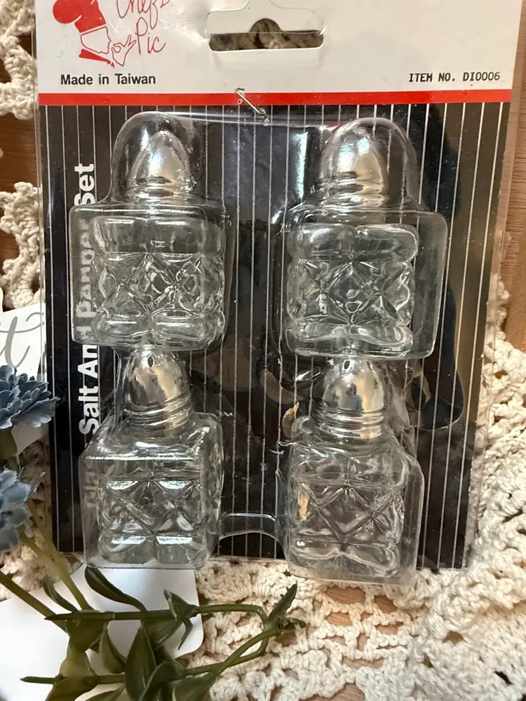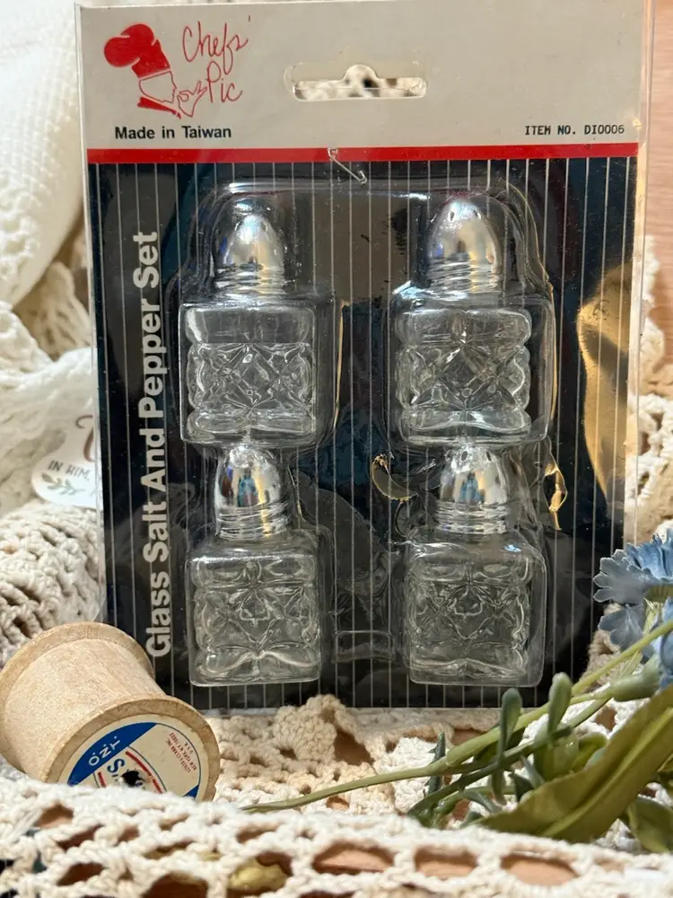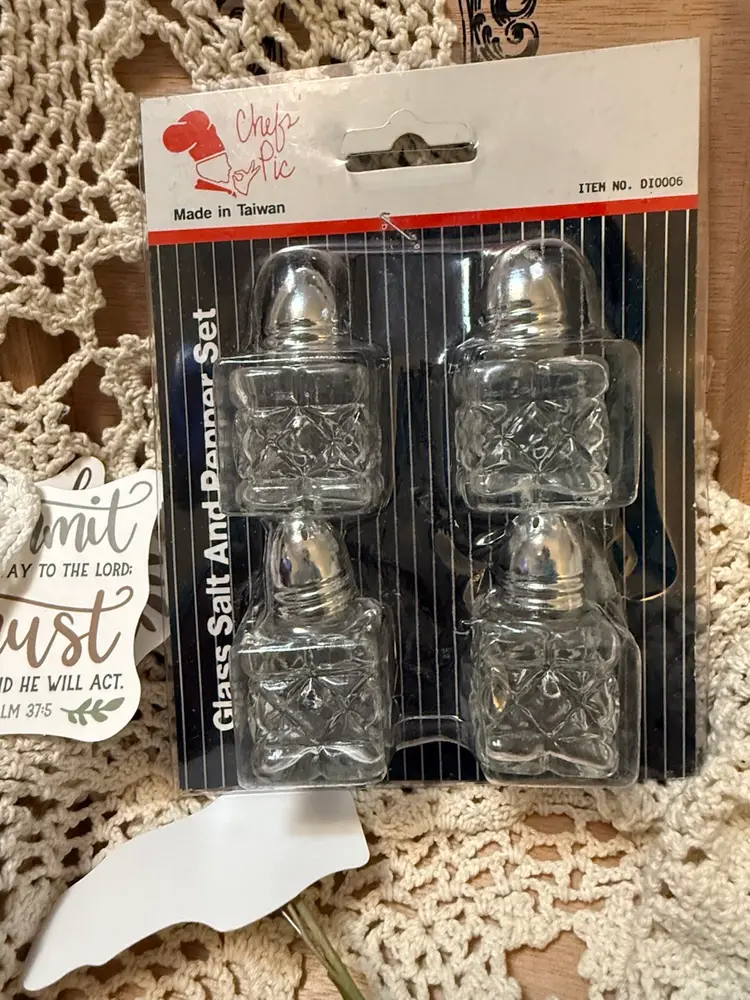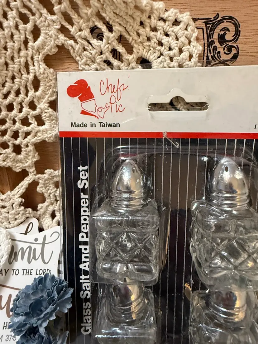 New in package vintage ChefsPic glass salt and pepper shakers.