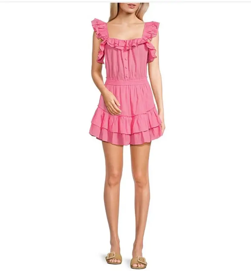 Chelsea & Violet Cassia Guaze Square Neck Ruffle Hem Romper
