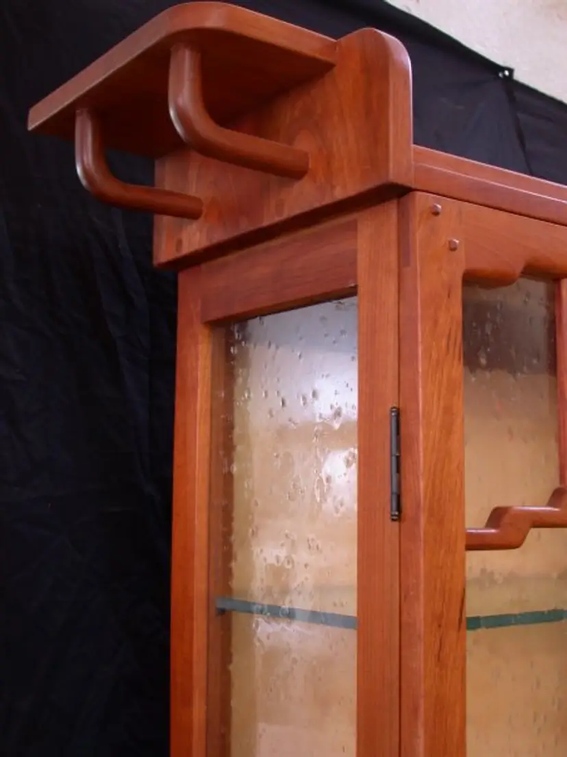 Based on the Arts and Crafts and specifically Green and Green, this piece features Cherry hardwood, all from one board, Seedy glass, Whitechapel hardware and cloud lifts. This is a custom piece, so if you would like something similar we can discuss budget, material, size, shipping options etc.