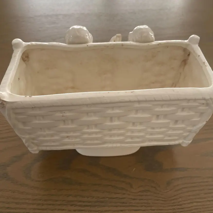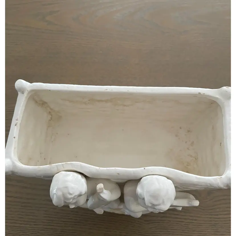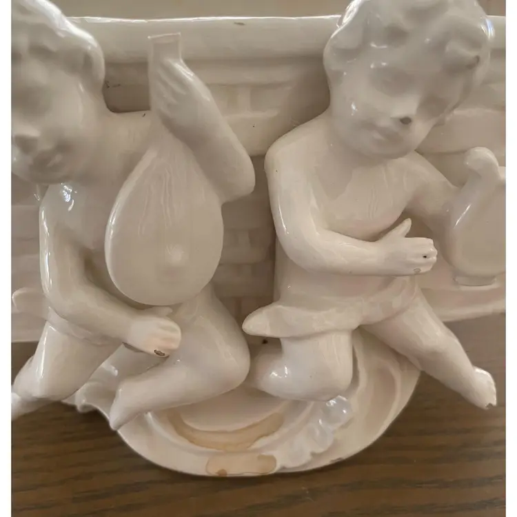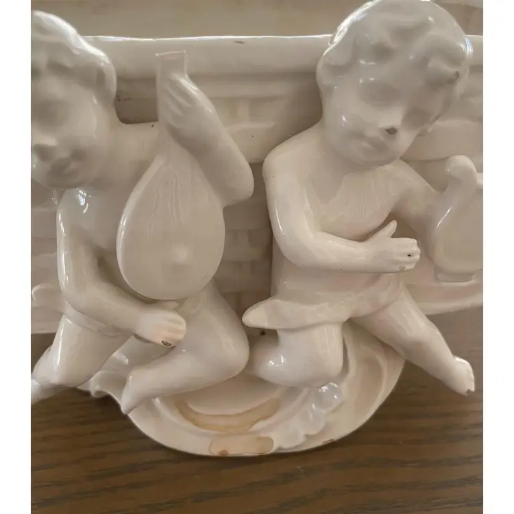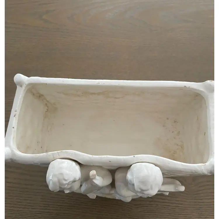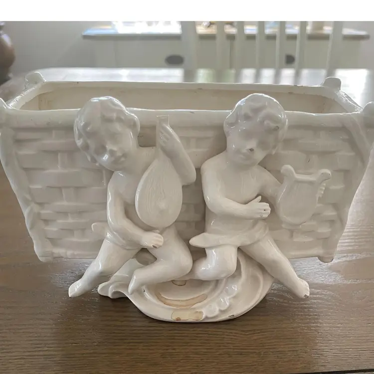 Ceramic Planter with Cherubs on front 7" Long x 4" high x 4" wide Vintage Few chips. Good conditiion for vintage. Flowers or a plant in this would look heavenly! Fast Shipping Thank you for shopping with me!