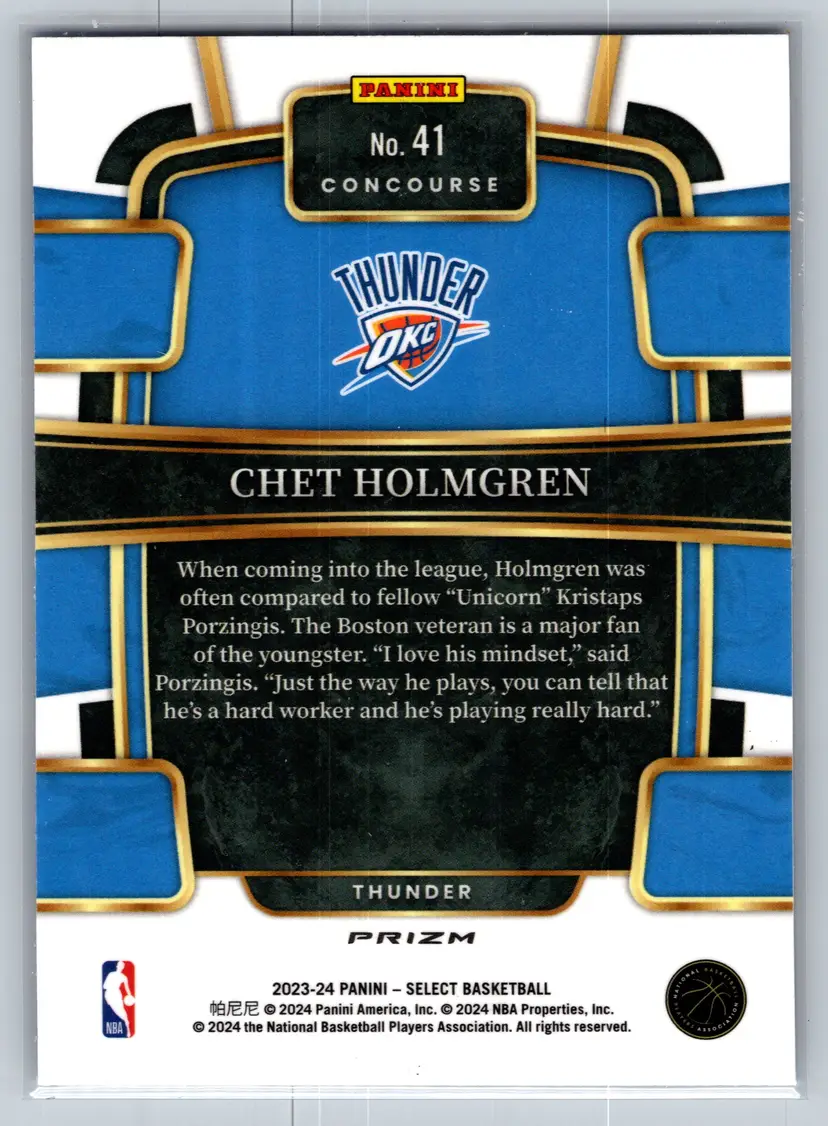 Chet Holmgren 2022-23 Panini Select Concourse #83 Blue Prizm (RC) Thunder