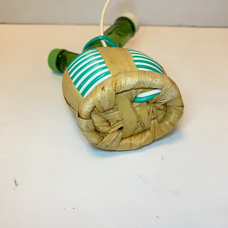 Chianti Bottle Nested Intertwined Salt & Pepper Shakers Green Glass Straw Measure about 4 inches high 103 grams