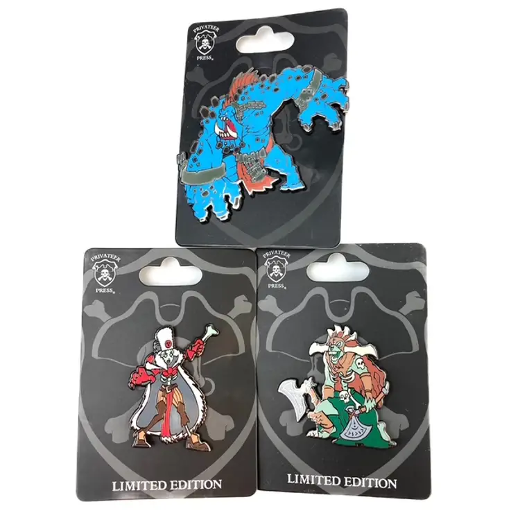 Collectible Character Enamel Pins by Privateer Press. All three are in new condition. Great items for your collection, gifts and stocking stuffers! mart142