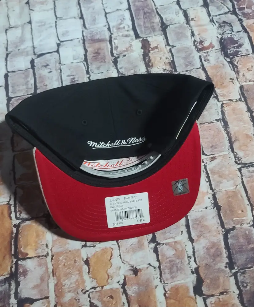 The Mitchell & Ness Chicago Bulls "Core Basic" Hardwood Classic Snapback is a structured cap that pays homage to the iconic Chicago Bulls team of the 1990s, featuring a flat embroidered team logo on the front and a Mitchell & Ness logo above the snapback closure. Made of 100% polyester in black with a gray underbill, this officially licensed NBA cap is perfect for any basketball fan looking to show their love for the Chicago Bulls. The snapback closure ensures a comfortable and secure fit for unisex adults, making it a stylish accessory for any casual outfit.