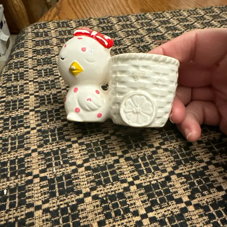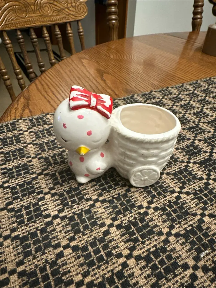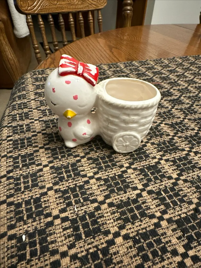 Chick With Pink Polka Dots Big Red Bow Succelent Planter 3"x3"