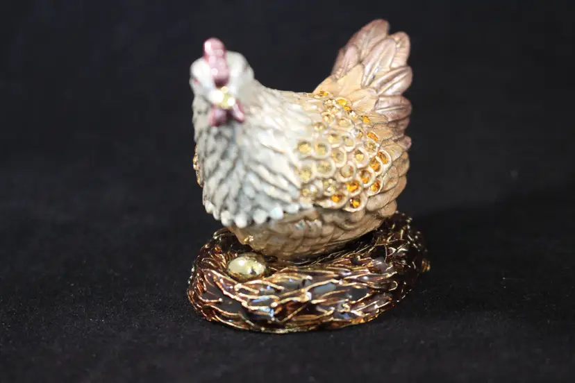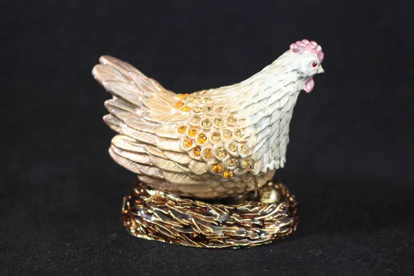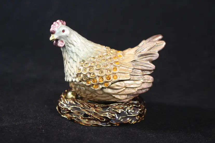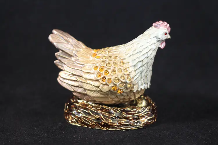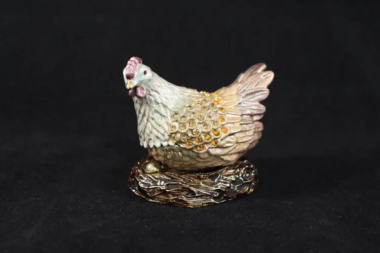 Chicken / Hen On Nest Trinket Box Handmade by Keren Kopal with Crystals