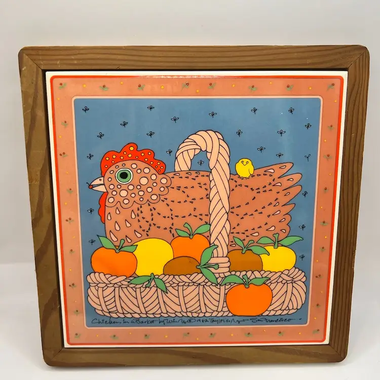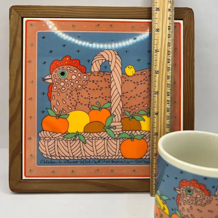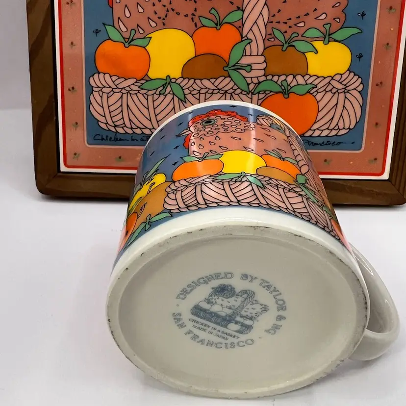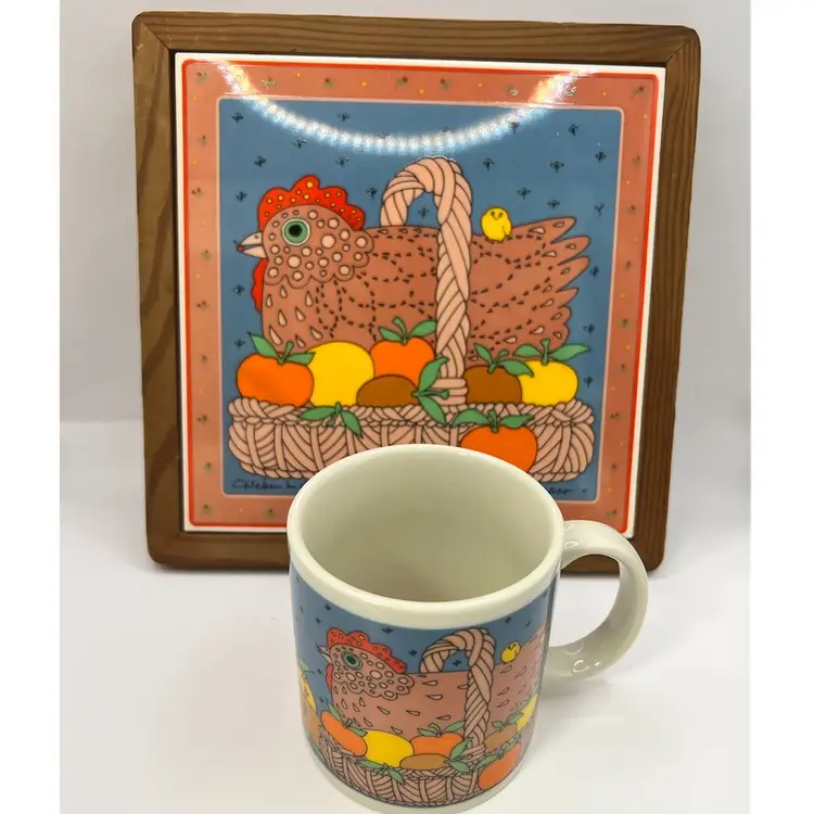 Printed signature & date on tile & mug. Adorable vintage art style with vibrant colors. Made in Japan. EVC Tile is 9" square, mug is 3.5" tall
