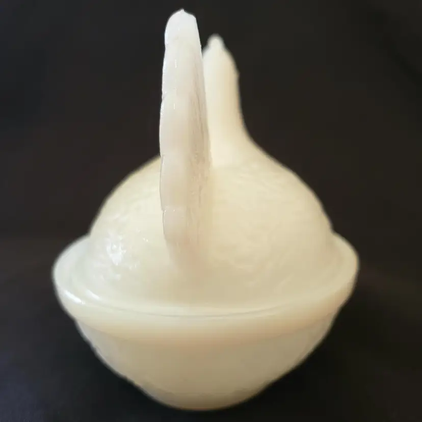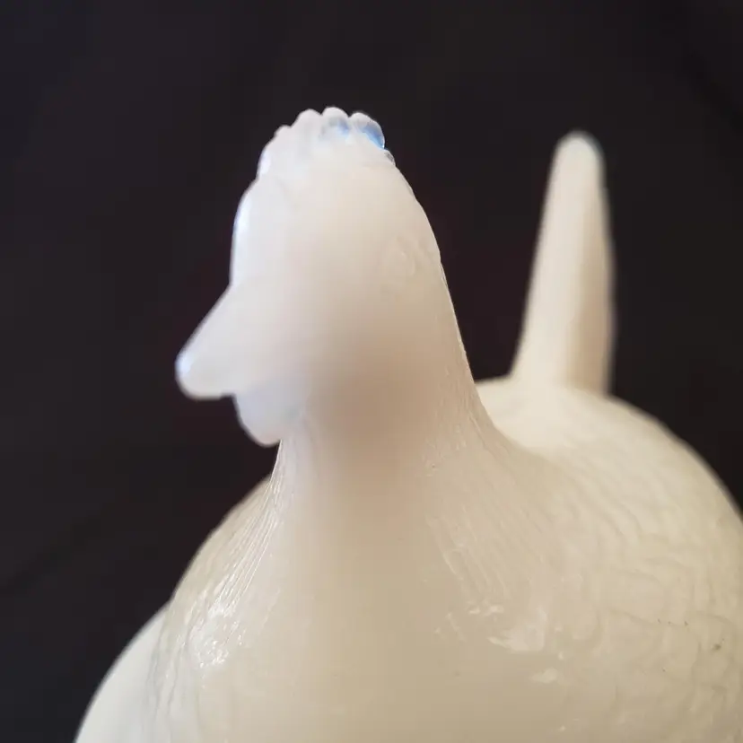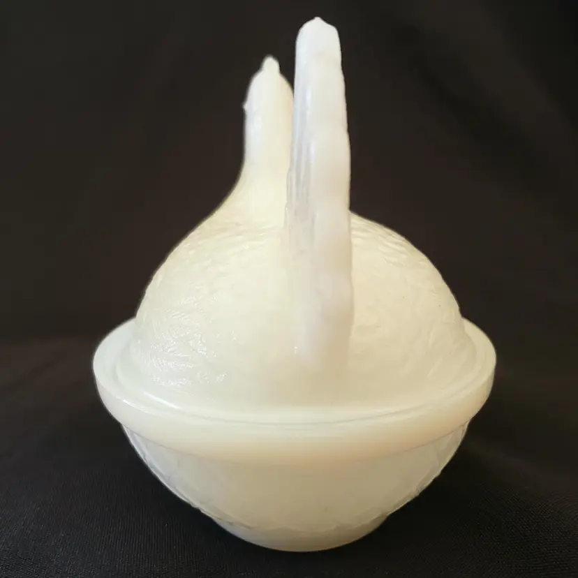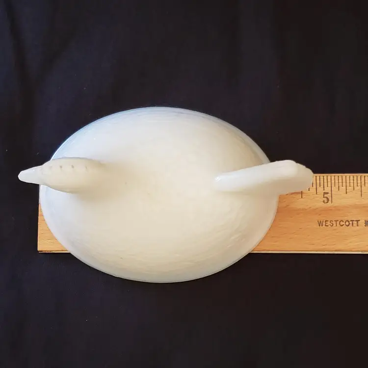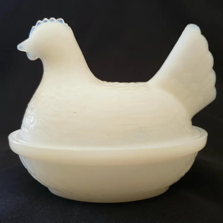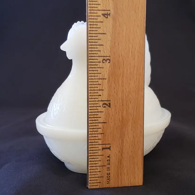Chicken On Nest Milk Glass Candy Dish Indiana 3¾" Tall x 4⅝" Wide Approximately. Used condition with possible rough spots due to manufacturing and / or use to crown and edge. Please view all the photos and read the entire item description and please ask any questions prior to purchase when possible.