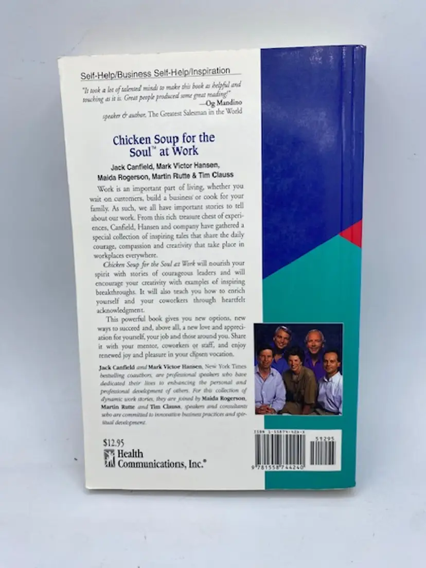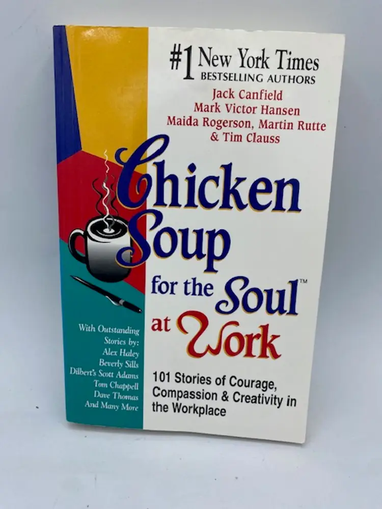 "Chicken Soup for the Soul at Work : 101 Stories of Courage, Compassion and Creativity in the Workplace" is a trade paperback book part of the "Chicken Soup for the Soul Ser." series. Published in 1996 by Health Communications, Incorporated, this book contains 101 stories aimed at young adults, ages 9-12, and adults. With a focus on spirituality, interpersonal relations, and motivation, this collection of short stories features contributions from authors such as Mark Victor Hansen, Maida Rogerson, Tim Clauss, Jack Canfield, and Martin Rutte. The book also includes illustrations, making it a visually engaging read for its intended audience.