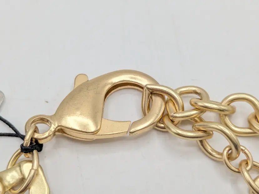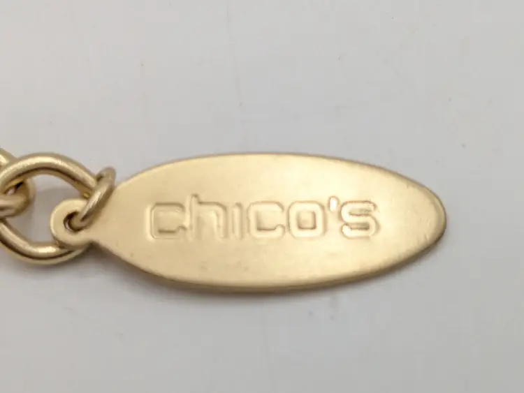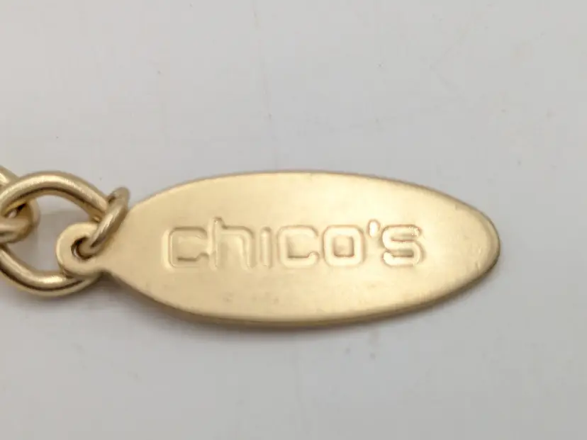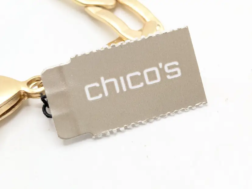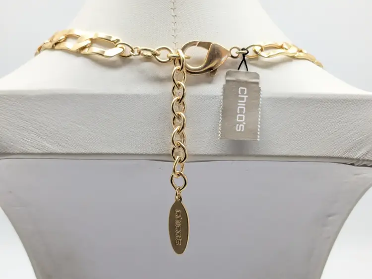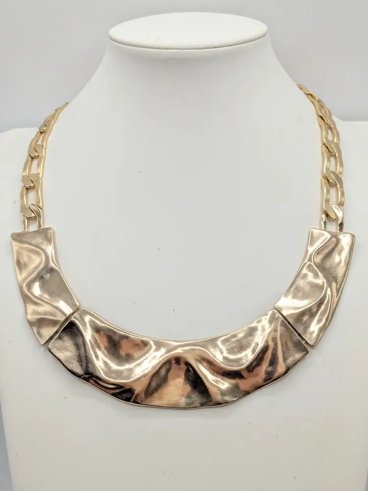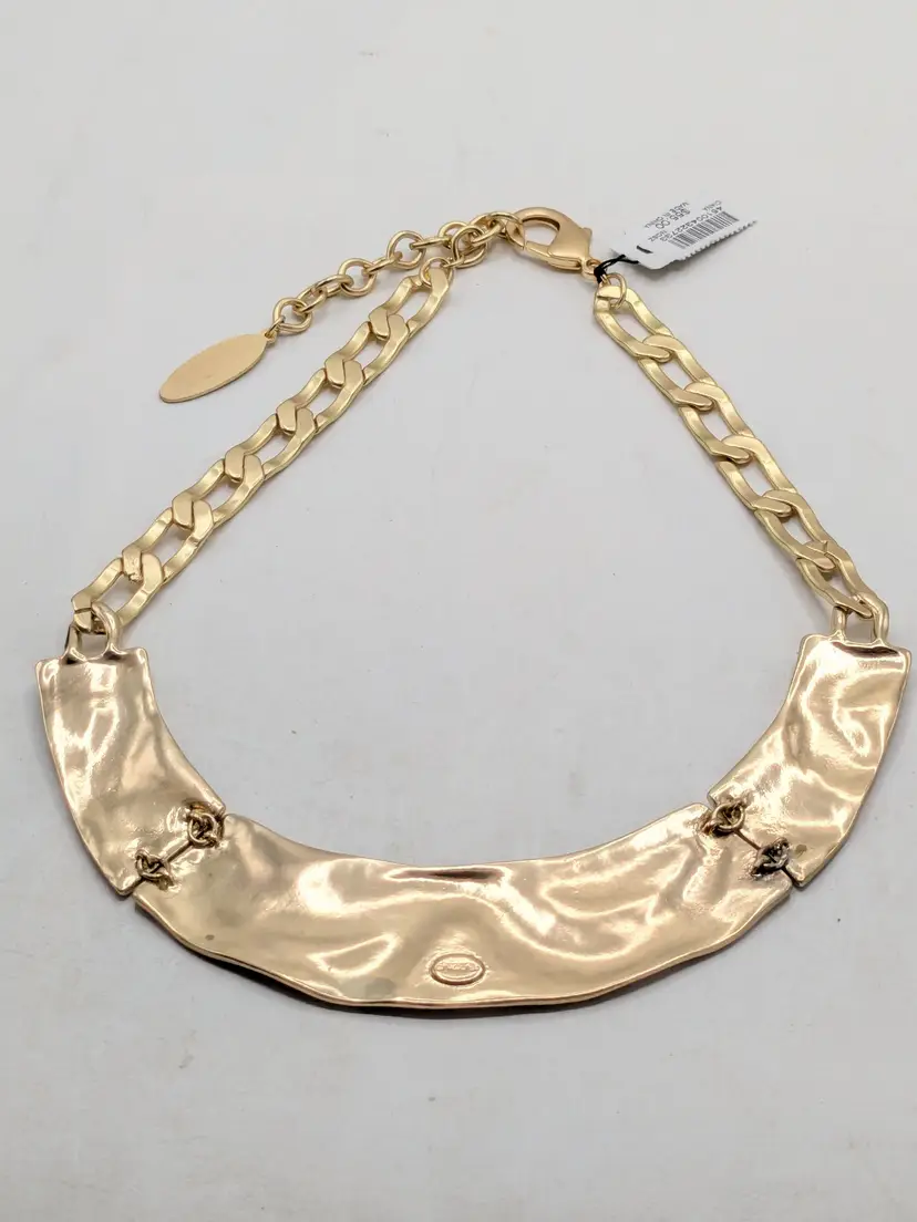 Great statement necklace! Good condition. New with tags. This bold necklace features a wavy paneled gold tone design with a sturdy chain. Gold tone is bright and shiny with no color loss. Measures 16" with a 3 1/2" extension. 1 1/8" wide. wen