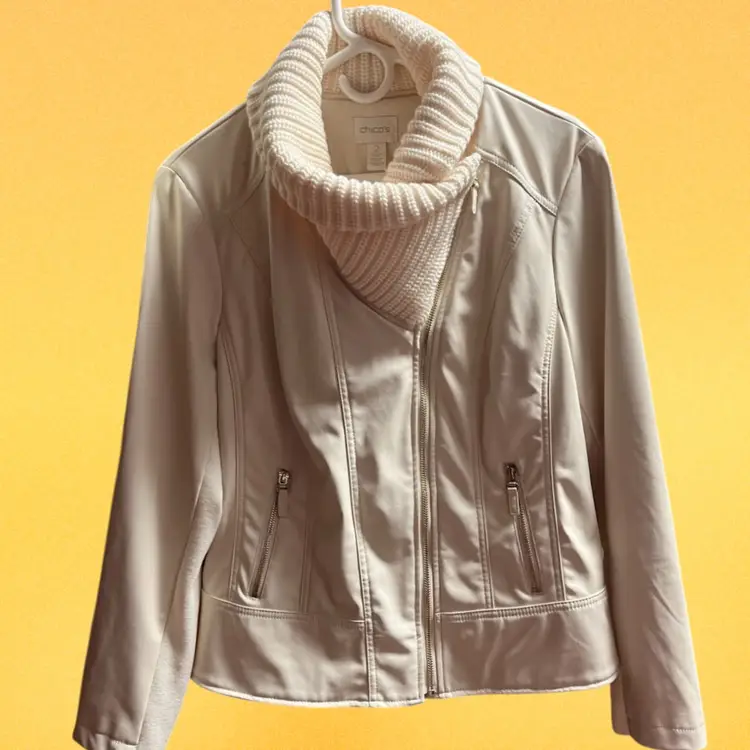 Chico’s Faux Leather Jacket - Cream - Chico’s size 2 / US size 12 - NEW never worn 100% of proceeds raised by the sale of this item go directly to supporting Feed the Need Foundation, a 100% volunteer-run 501(c)(3) charity (Federal EIN: 86-1589929). Your contributions help provide essential support for Special Needs young adult group homes, school food pantries, three children's hospitals, holiday toy drives, Thanksgiving meals, hurricane relief efforts, and more for community members in need in multiple states. Together, we can make a meaningful impact in the lives of those who need it most. Thank you for your generosity!