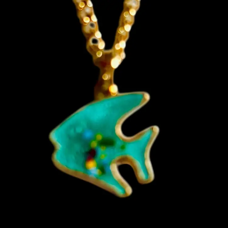 Vintage Sarah Coventry Child’s 14” Guppy Necklace #8288. Such a vibrant little guppy fish. 1975