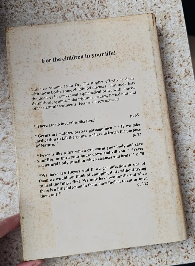 "Childhood Diseases by Dr. John Christopher is a hardcover book published in 1978 by Christopher Publications. Written in English, this book focuses on the subject of childhood diseases and is authored by Dr. John Christopher. With a publication year of 1978, this book is a valuable resource for those interested in learning more about the medical challenges faced by children and how they were addressed in the past."
