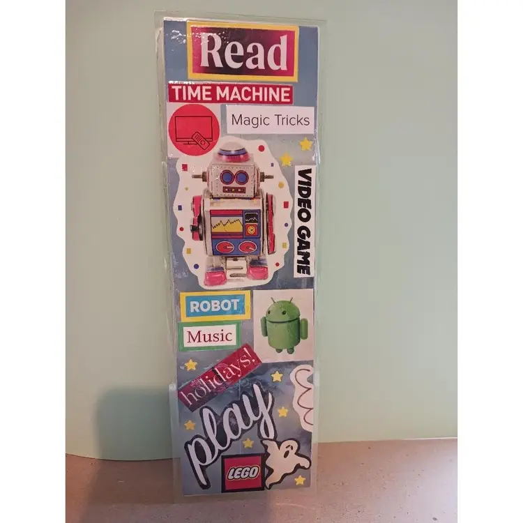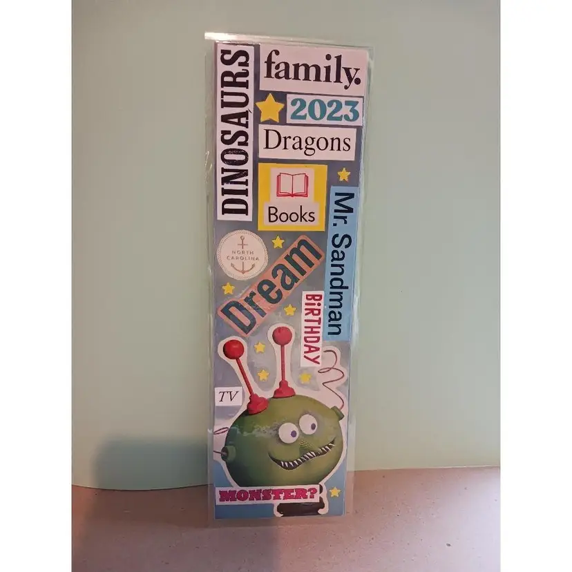 I create bookmarks and vision boards from words and pictures cut out of magazines. Some of the magazines date back to the 1940s! It is my goal to use only recycled found materials, and not buy anything. Occasionally I can't find a word, like NikNax, and have to cheat and type it and print it out.