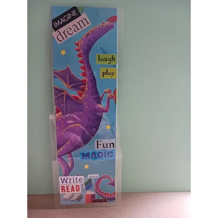 I create bookmarks and vision boards from words and pictures cut out of magazines. Some of the magazines date back to the 1940s! It is my goal to use only recycled found materials, and not buy anything. Occasionally I can't find a word, like NikNax, and have to cheat and type it and print it out.