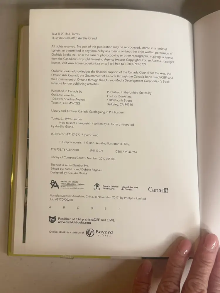 Children’s Graphic Novel ‘How To Spot A Sasquatch’ Text: J. Torres, Illustrations: Aurelie Grande 2018