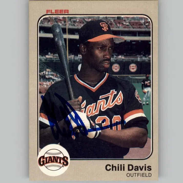 Authentic 1983 Fleer baseball card featuring Chili Davis of the San Francisco Giants, signed in blue ink. A must-have for Giants fans and collectors of signed sports memorabilia. Your purchase supports Signatures For Soldiers in helping homeless and disabled veterans.