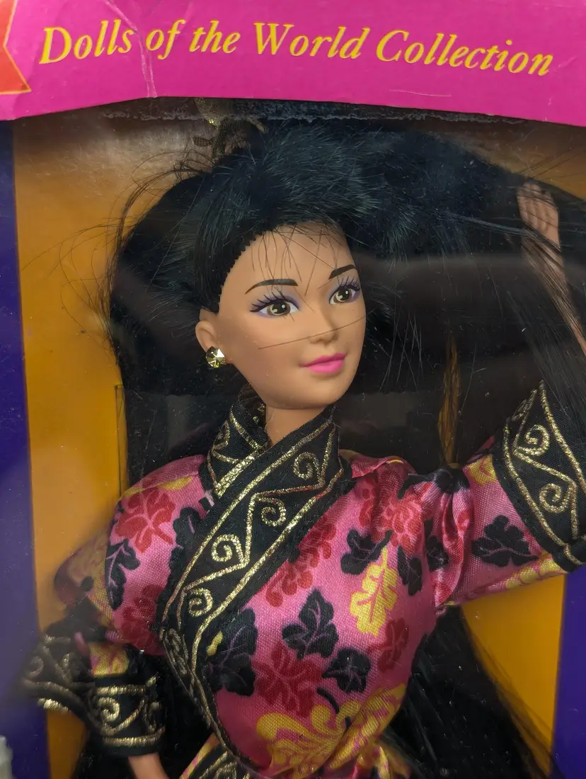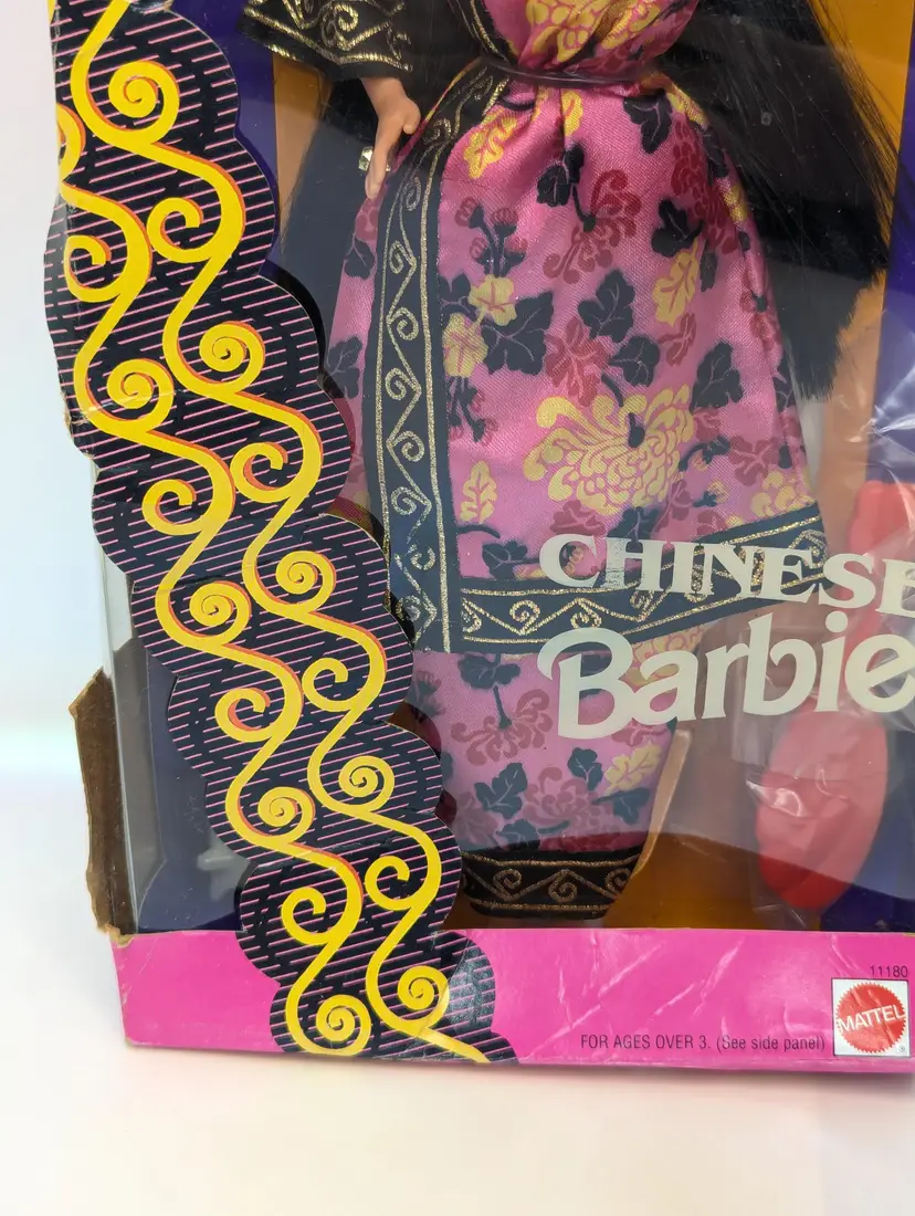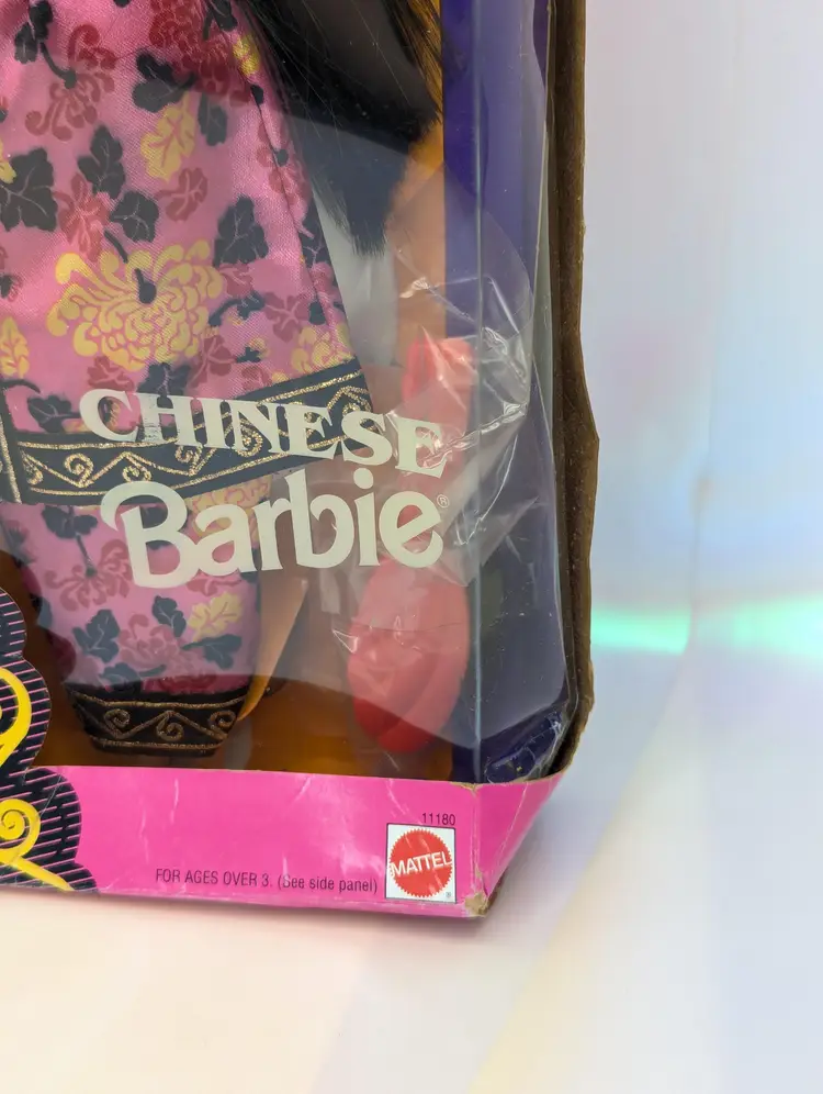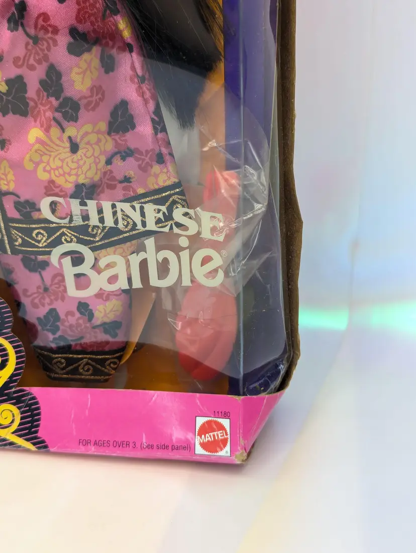 Vintage Chinese Barbie Doll Special Edition Dolls of The World from 1993 by Mattel #11180 - In Crushed/Damaged Box - Doll is in good condition inside and looks to be complete still. Never taken out of the box, just poor storage. Would be great for an out of box collector! Comes from a smoke free, pet friendly home. Item has been lightly cleaned and stored away