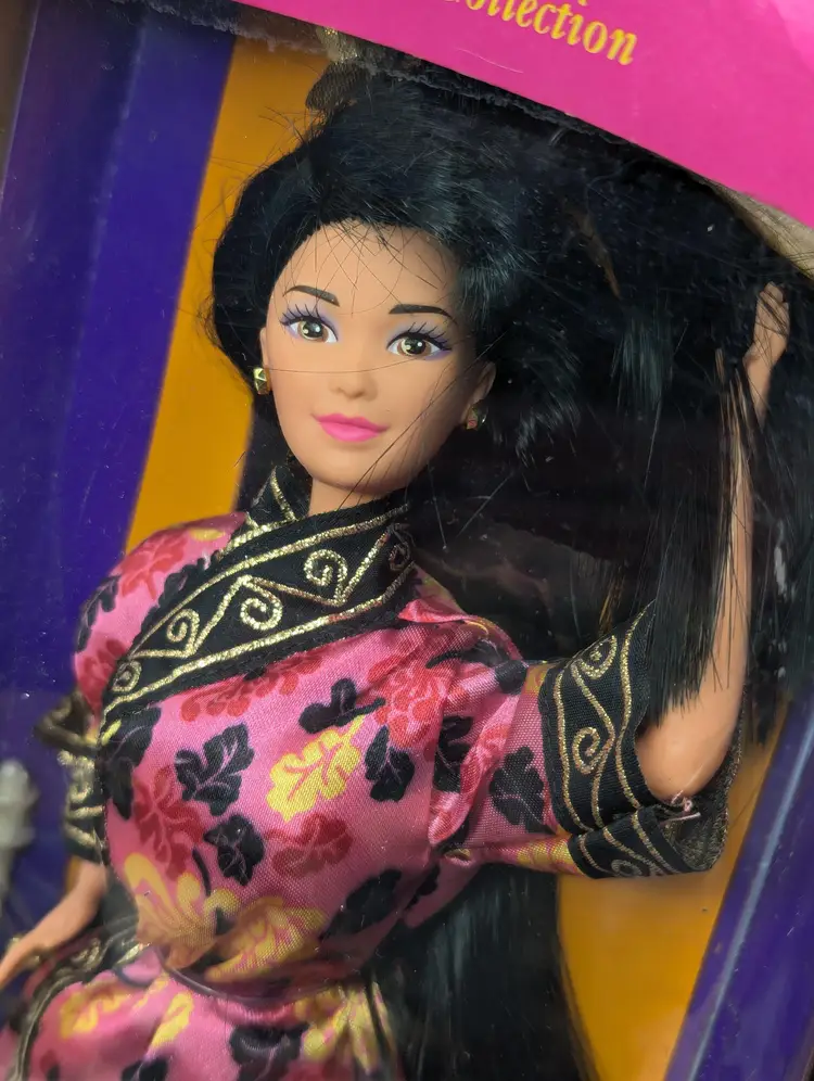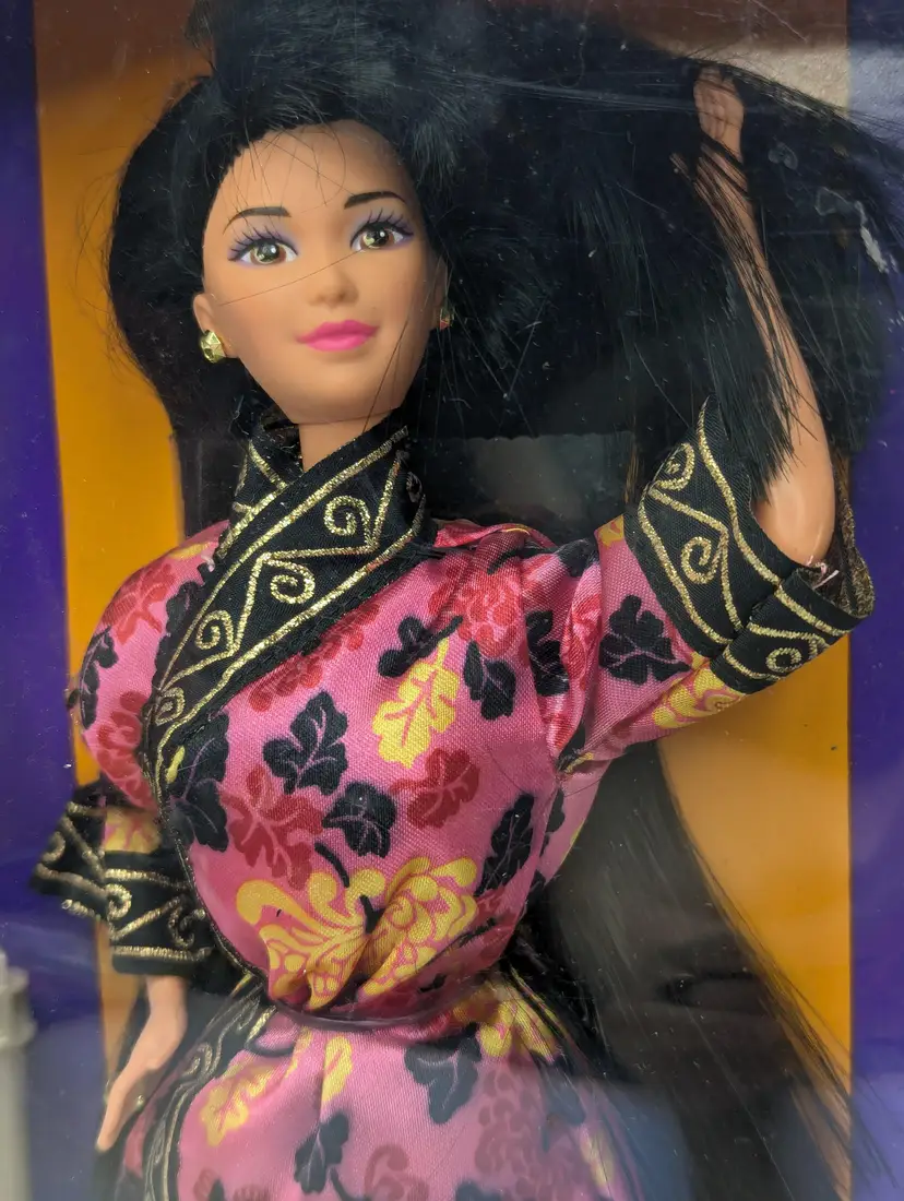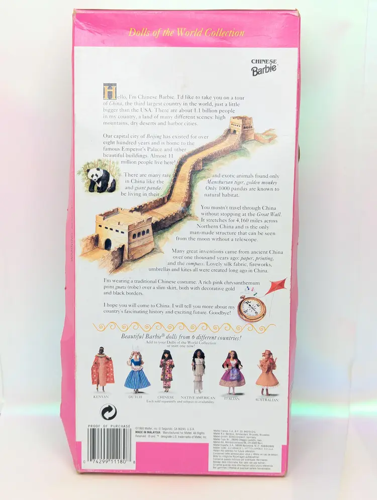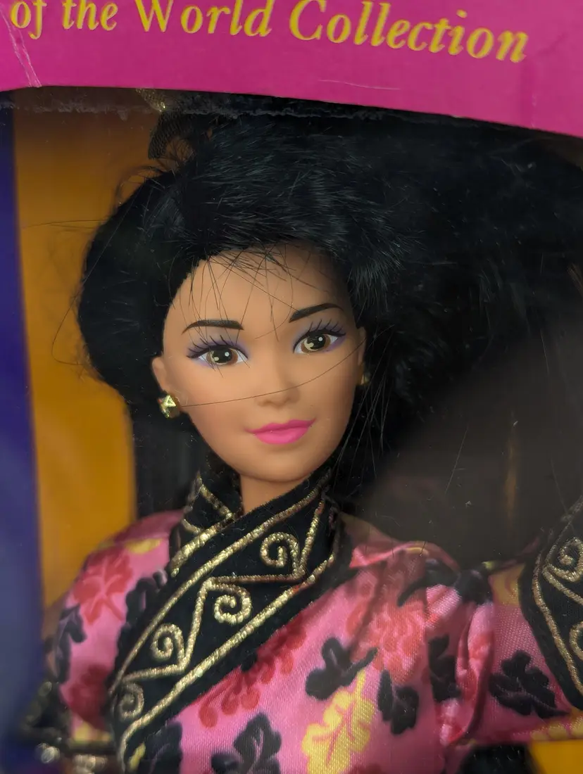 Vintage Chinese Barbie Doll Special Edition Dolls of The World from 1993 by Mattel #11180 - In Crushed/Damaged Box - Doll is in good condition inside and looks to be complete still. Never taken out of the box, just poor storage. Would be great for an out of box collector! Comes from a smoke free, pet friendly home. Item has been lightly cleaned and stored away