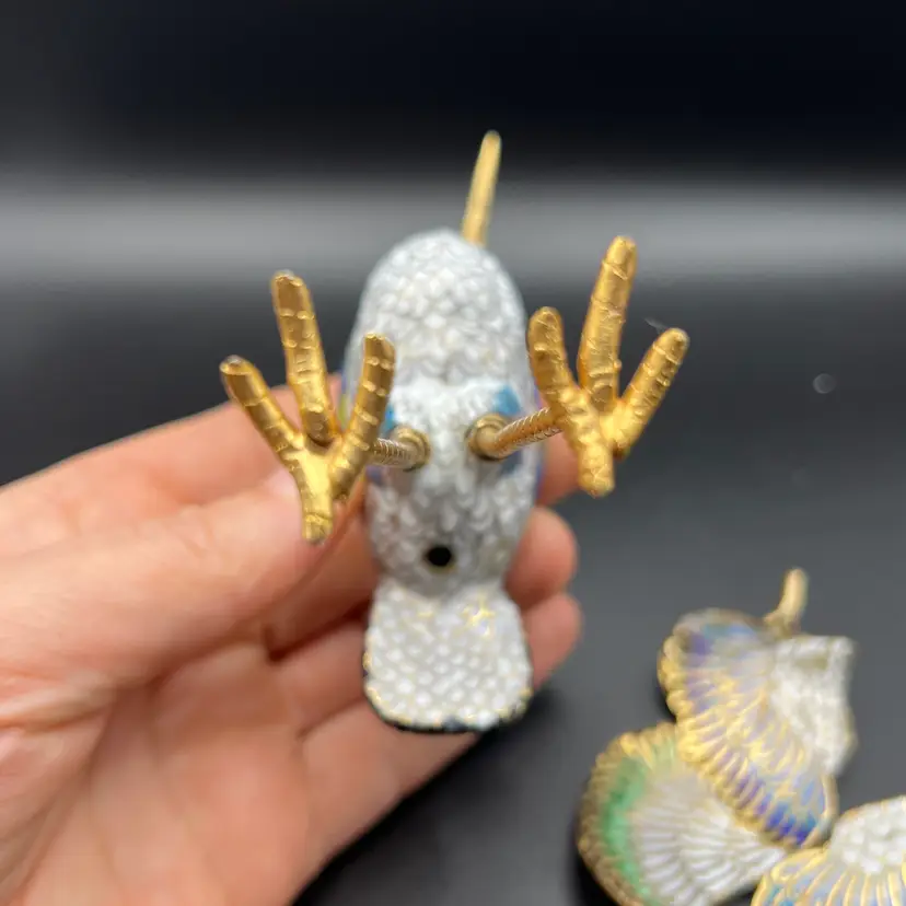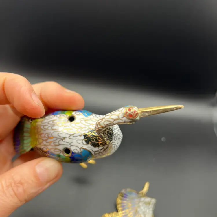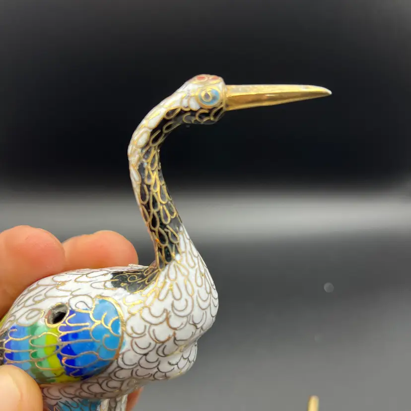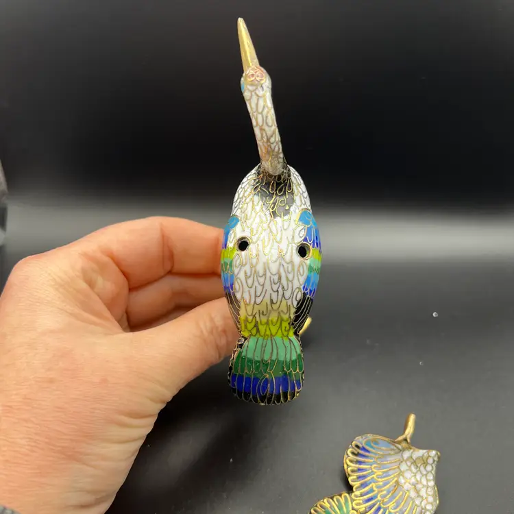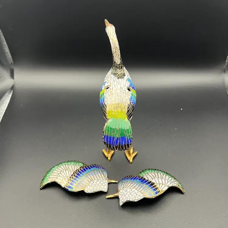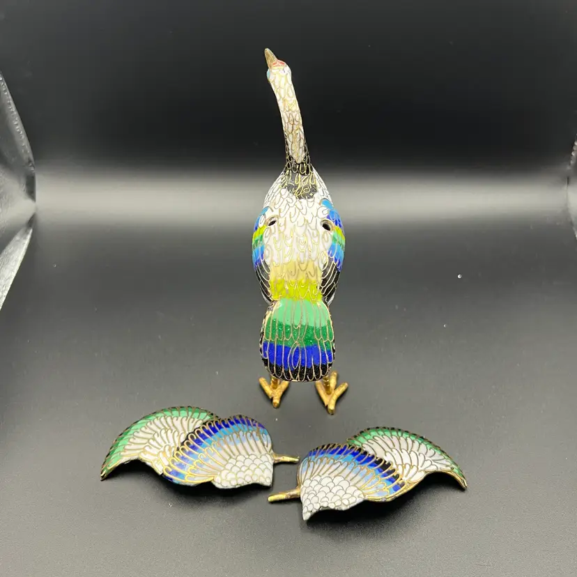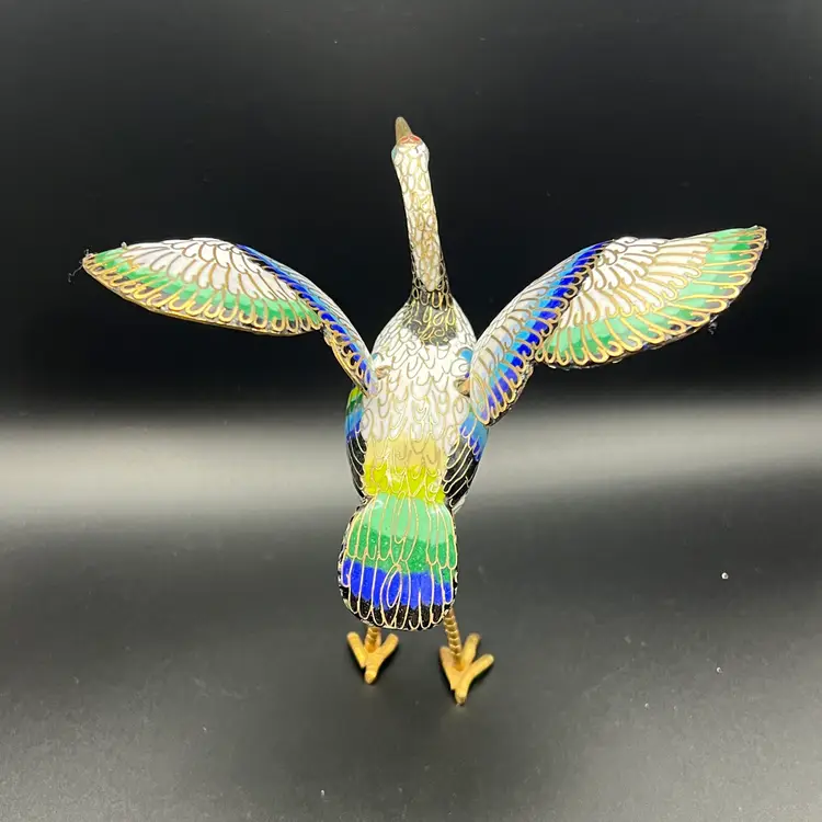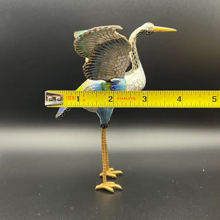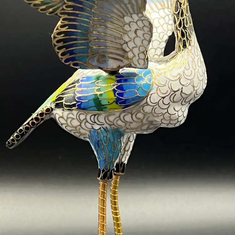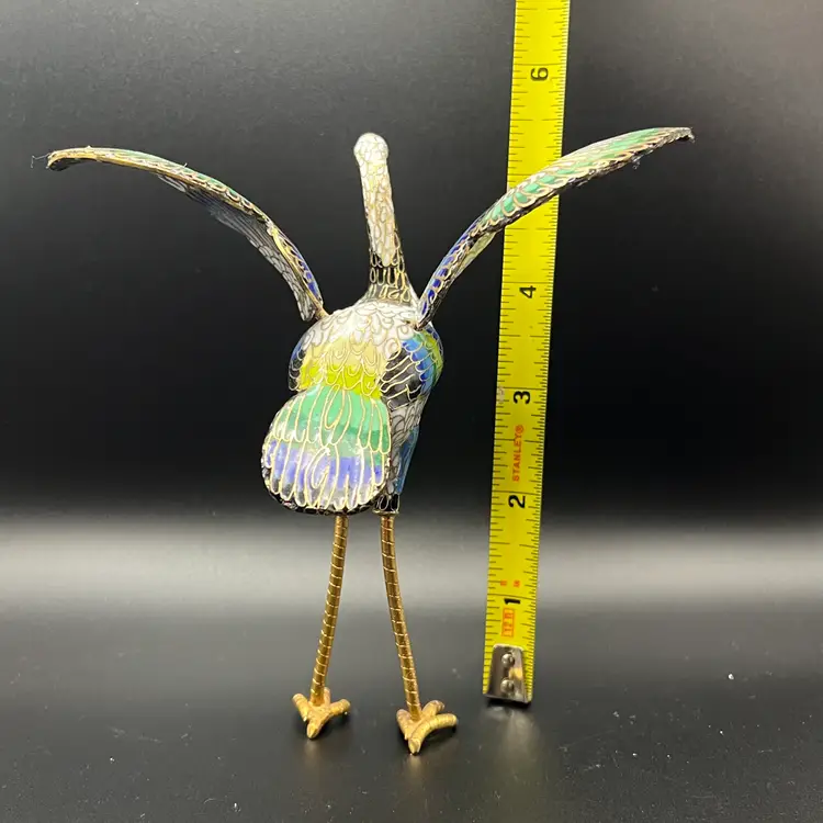 Chinese Cloisonne Crane Bird Blue White Gold Expanded Wings Free Standing 5.5” Beautiful colors and amazing details.