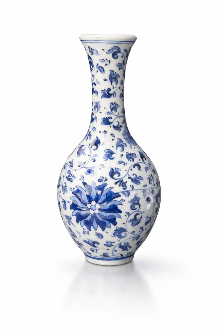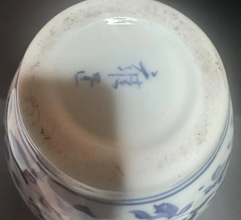 Chinese porcelain vase Pretty flower and plant print 9'' tall. 4" at widest point. Makers mark on bottom.
