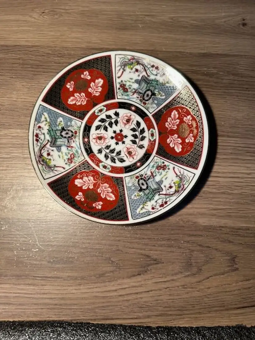 Vintage Handmade Japanese Porcelain Imari Decoratve Plate. Vivid Colors: Green, Red, Blue and Black all Gilt in Gold. No chips or cracks. 6.5" plate