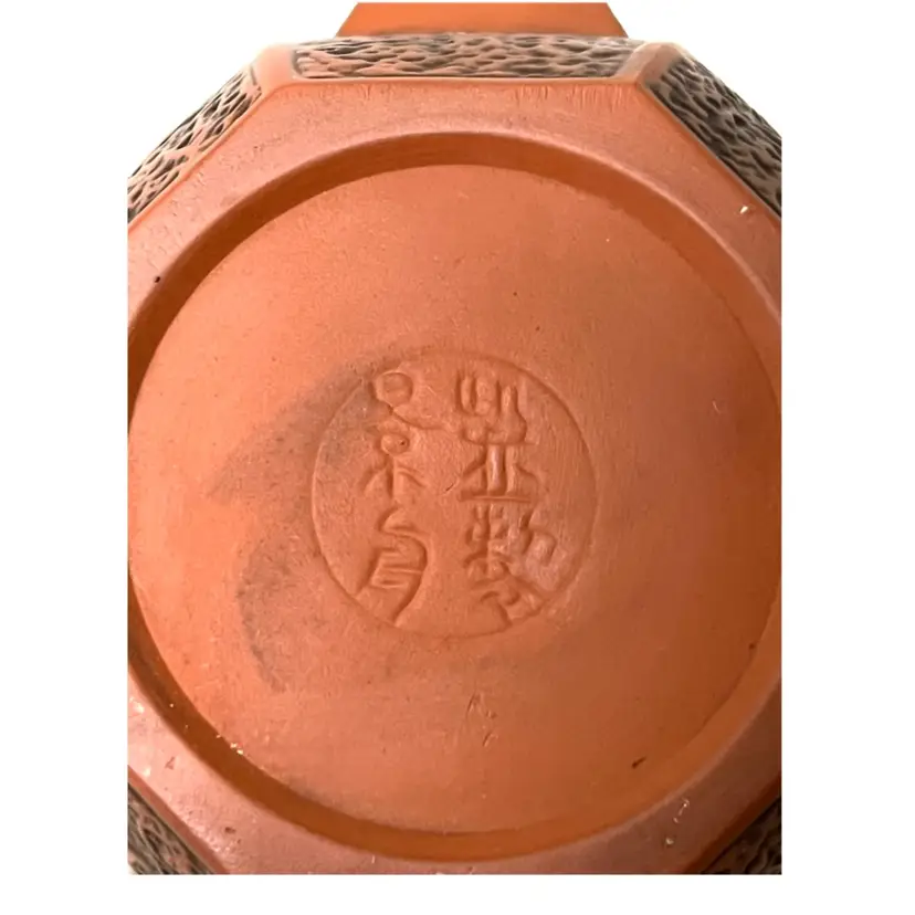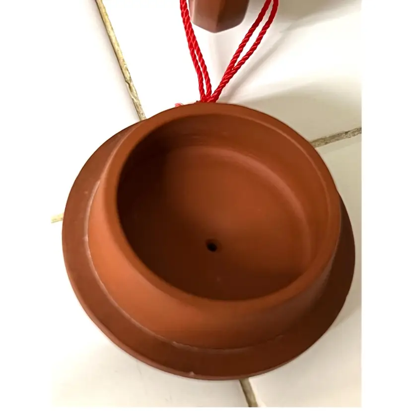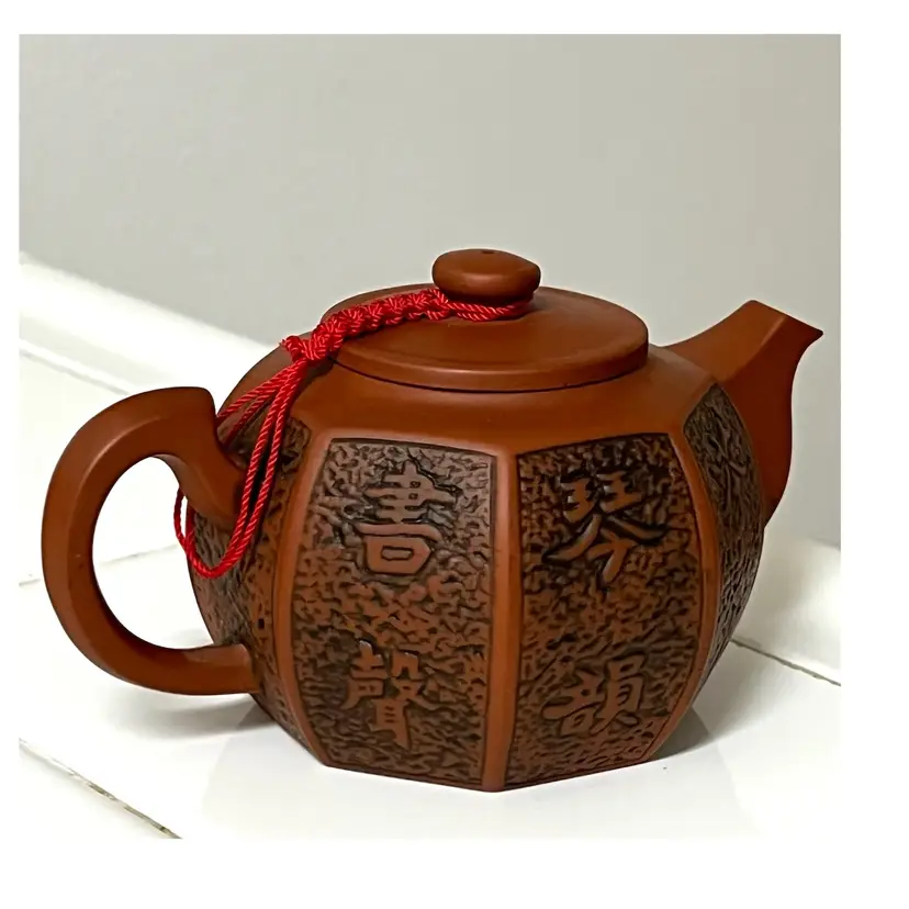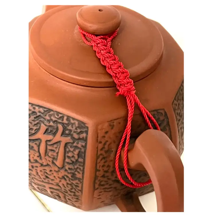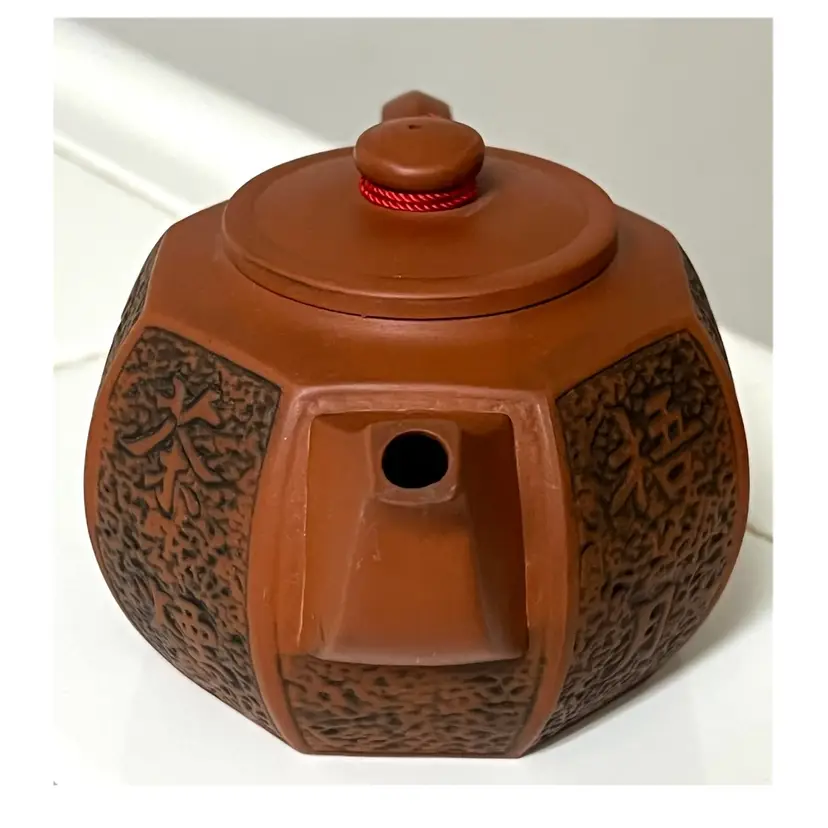 Chinese Terracotta Clay Brown Small Teapot With Red Ribbon 5x3x3.5 in. No chips/cracks.