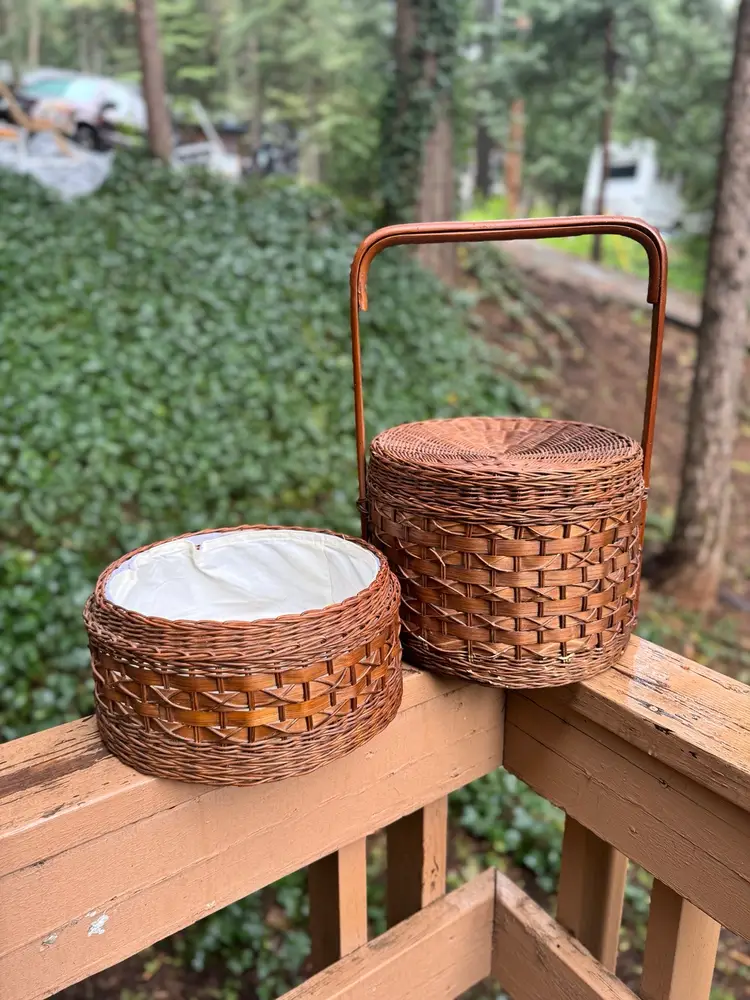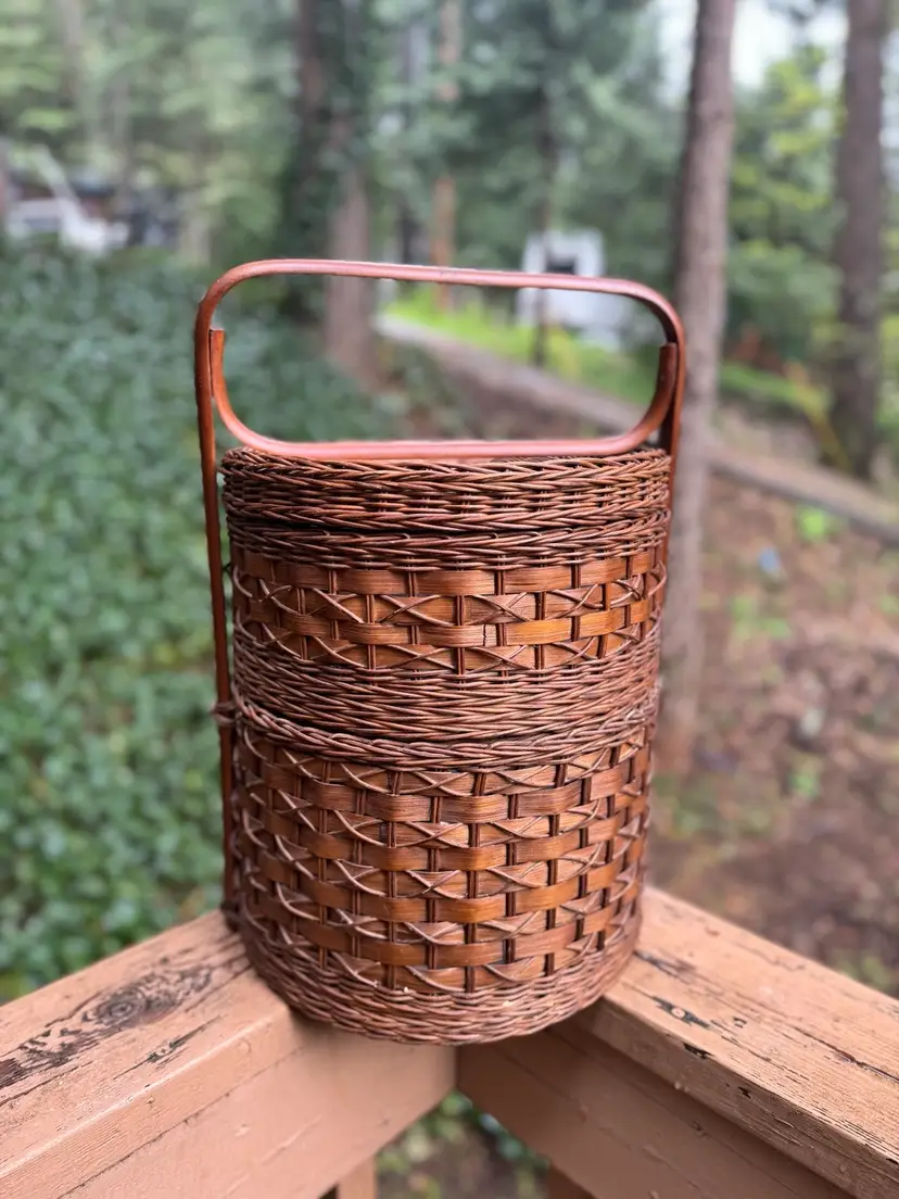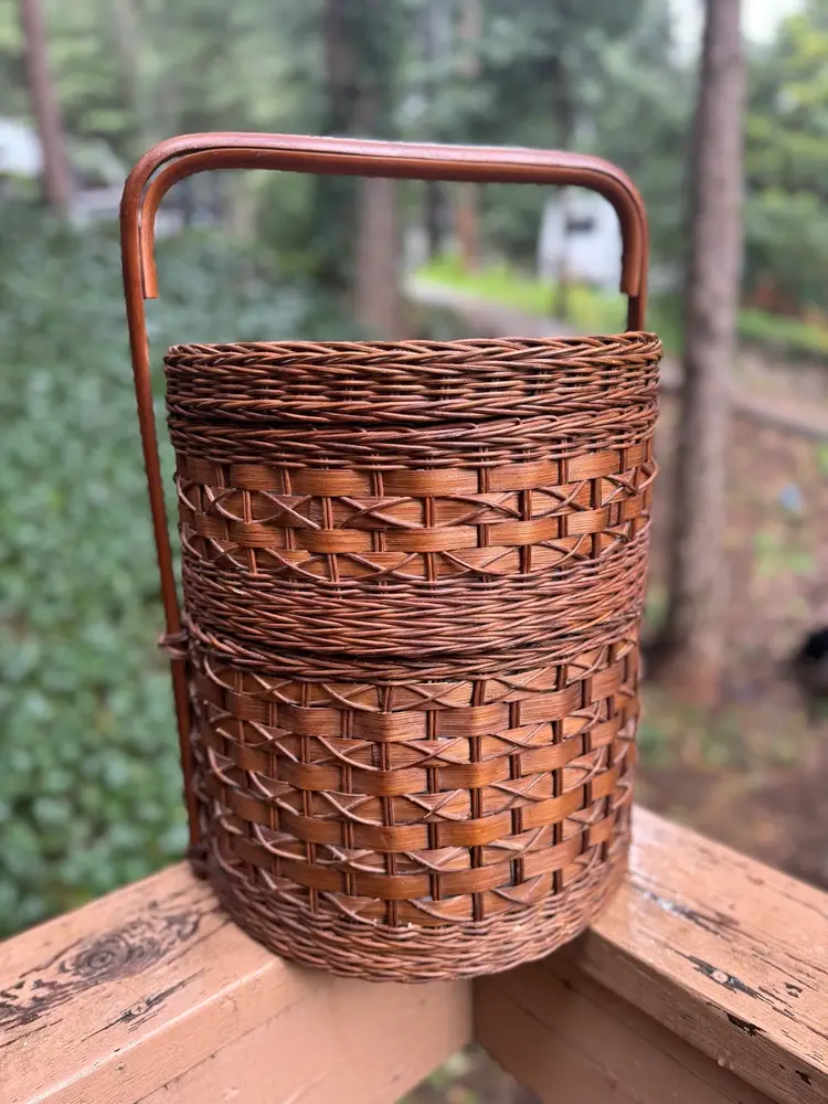 12.5” W 13.5 W with handle 19” total height with handle 14” total basket height 8” H Bottom basket 6.5” H top basket with lid