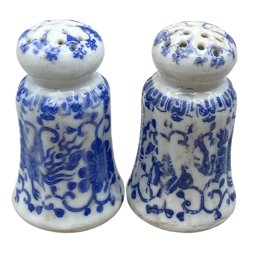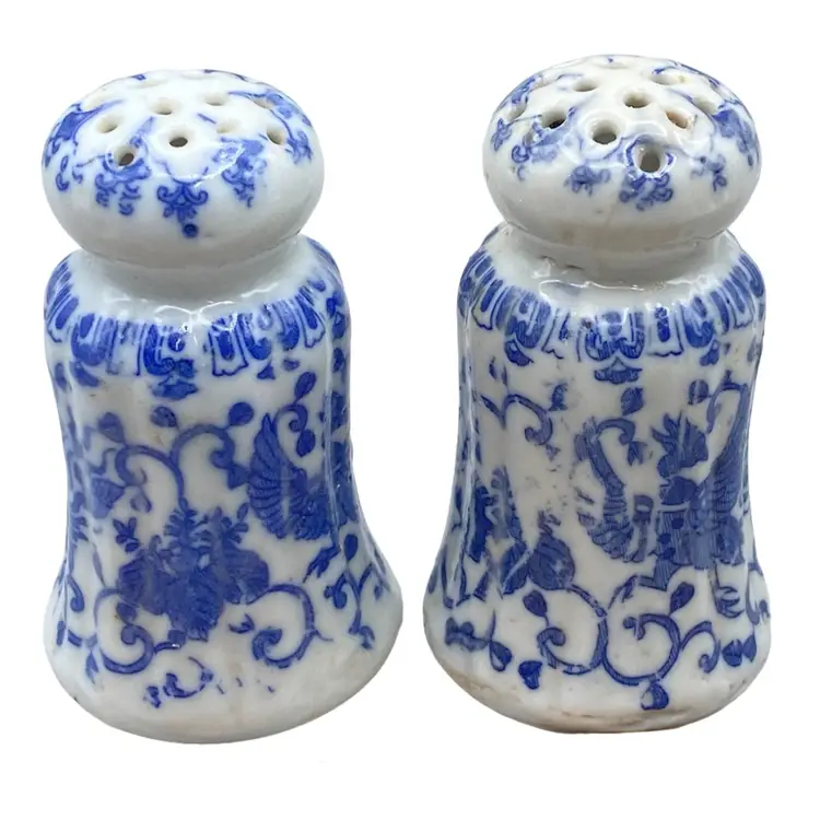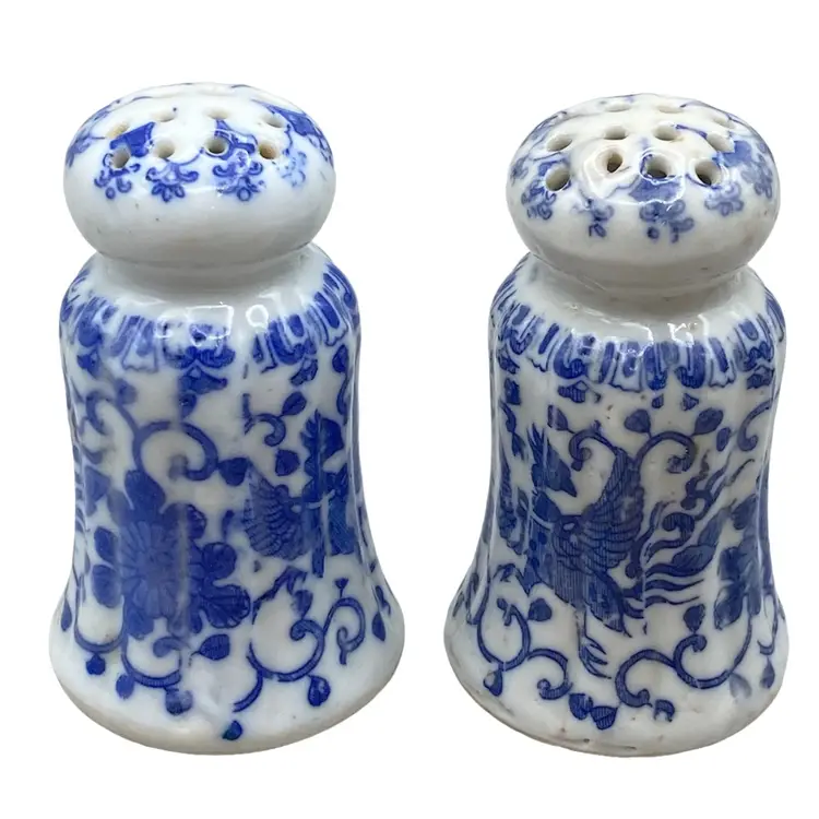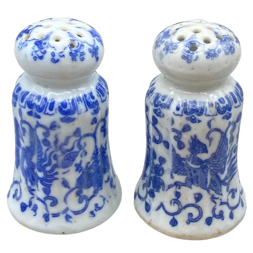 Chinoiserie Phoenix Bird Floral Porcelain Shakers Cottage Blue White Floral