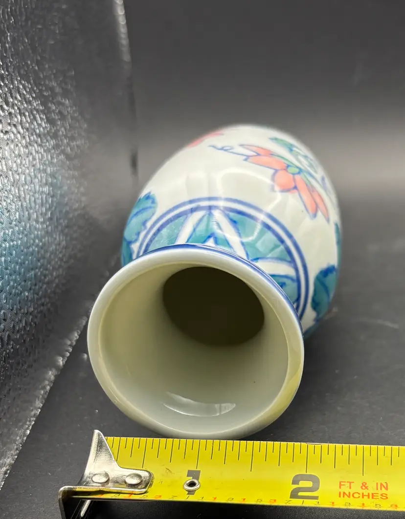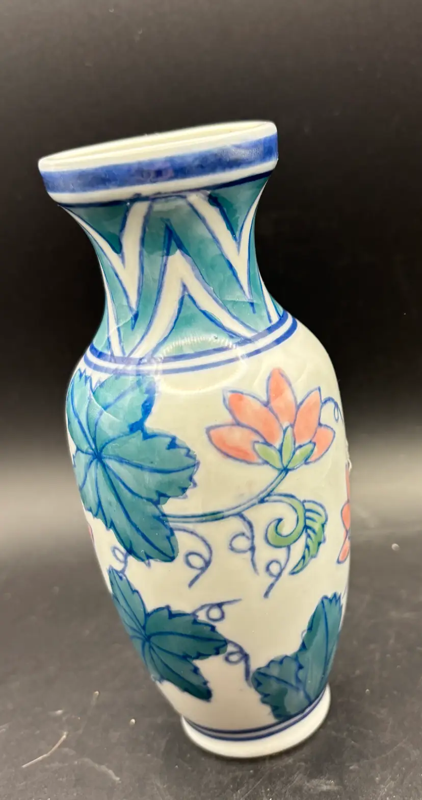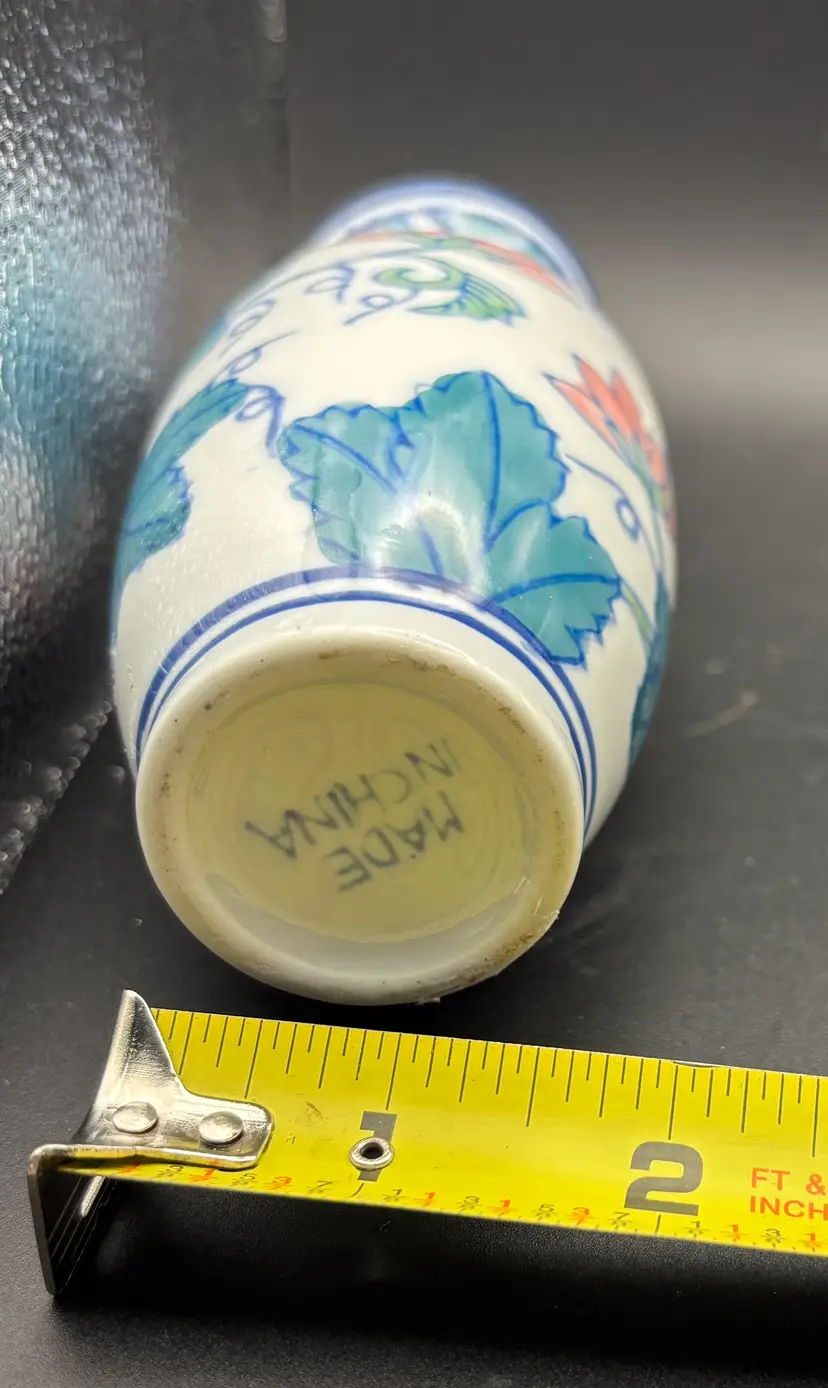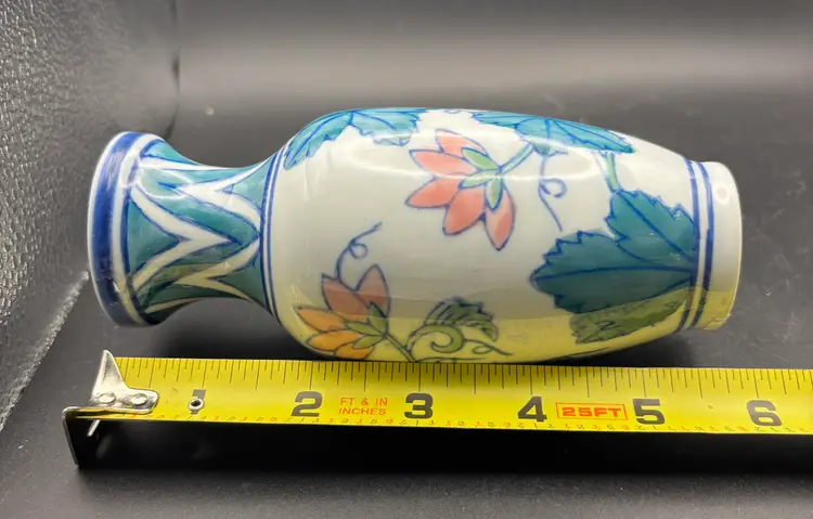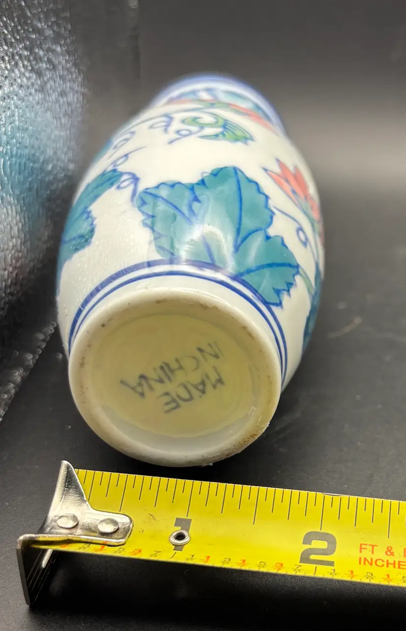 This small vase was produced in China and is marked. Hand painted. No chips or cracks discerned. See photos for size and condition. A really lovely piece.