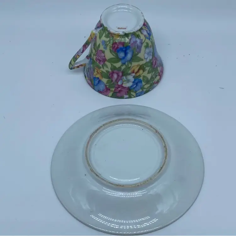 While not as historically renowned as some earlier Japanese porcelain periods, these post-war items are still collected for their decorative appeal and as a representation of a specific era in Japanese manufacturing and international trade. The floral motifs, like the sweet pea pattern seen, were common and reflected popular tastes of the time.