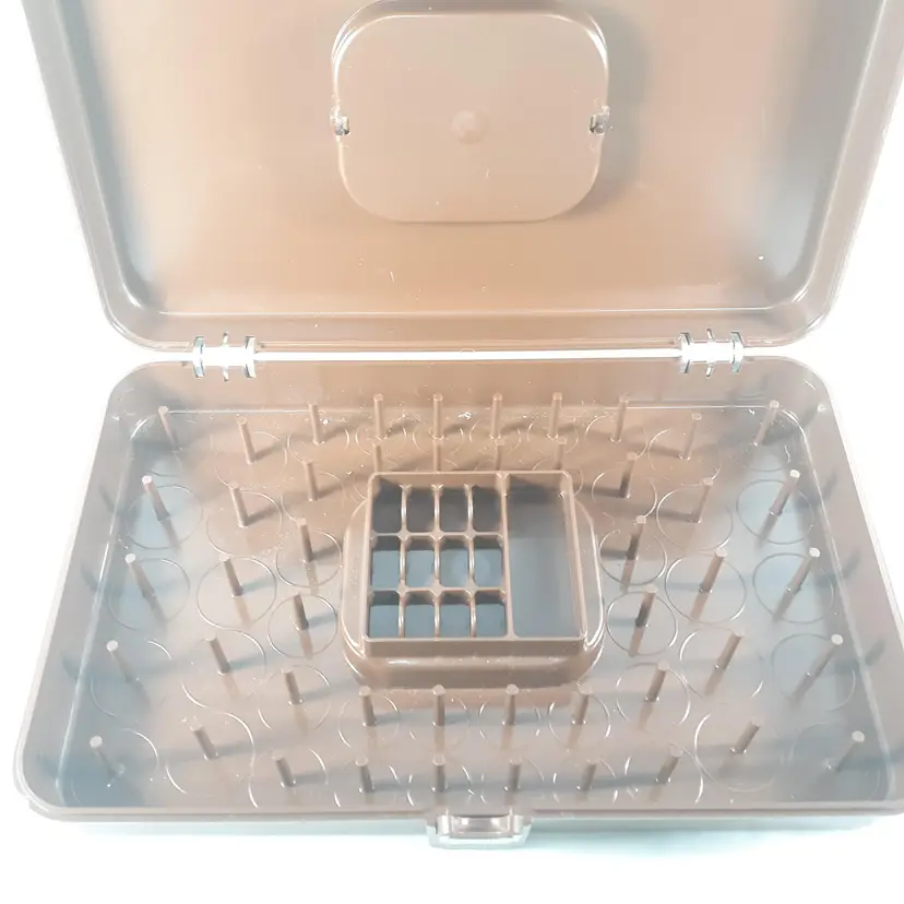 Item: Chocolate Brown Wilson Bobbin Thread Sewing Notions Box Plastic