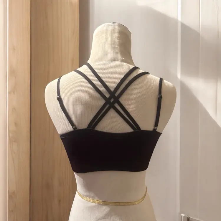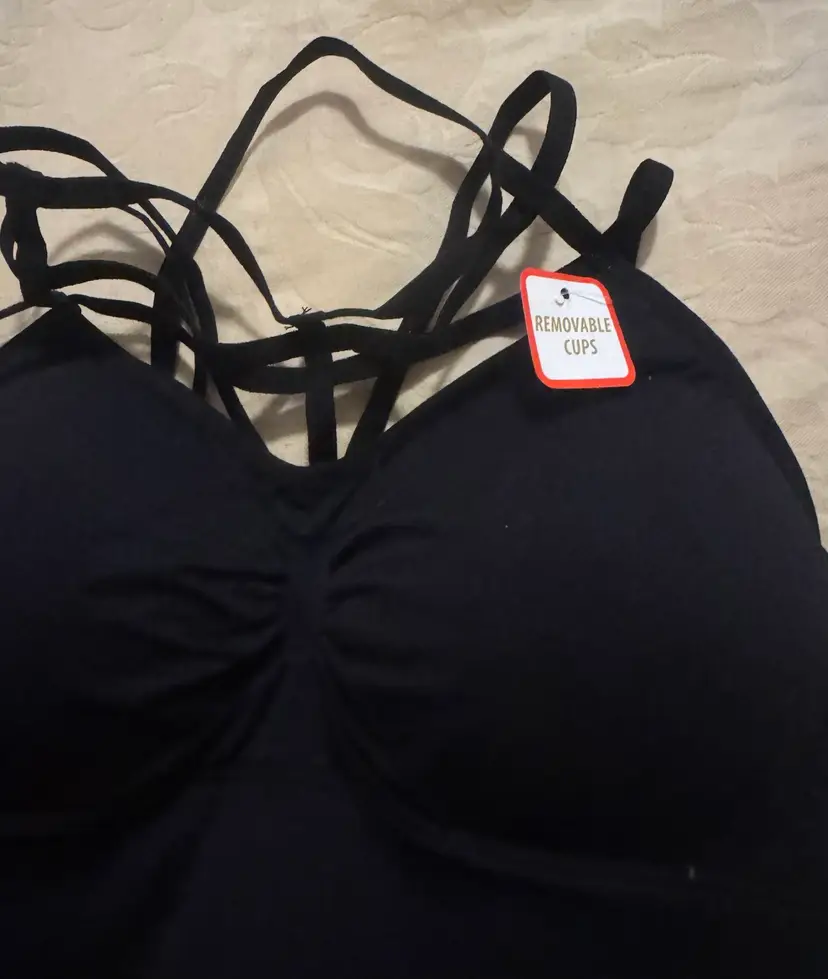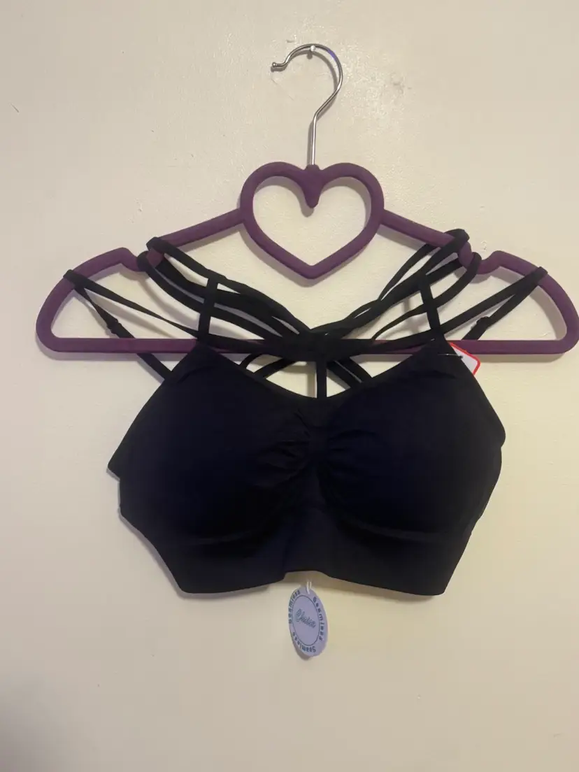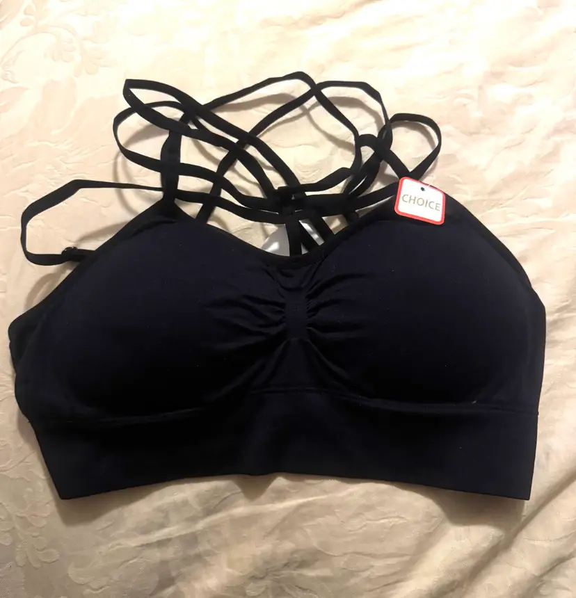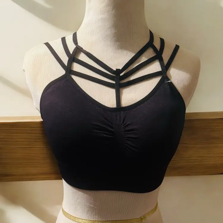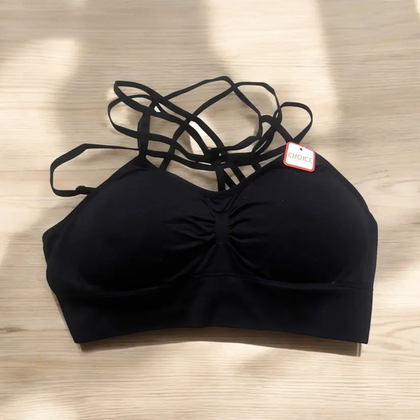 Choice Sports Bralette Cage Neckline crisscross back. Material 92% Nylon And 8 % spandex. Removable cups