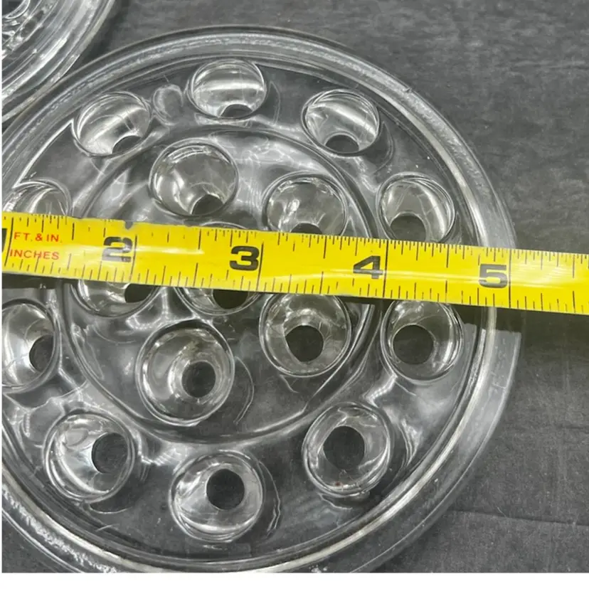 Large Disc 17 Hole Clear Glass Flower Frog 5” In Diameter Shown Live 9/17/25