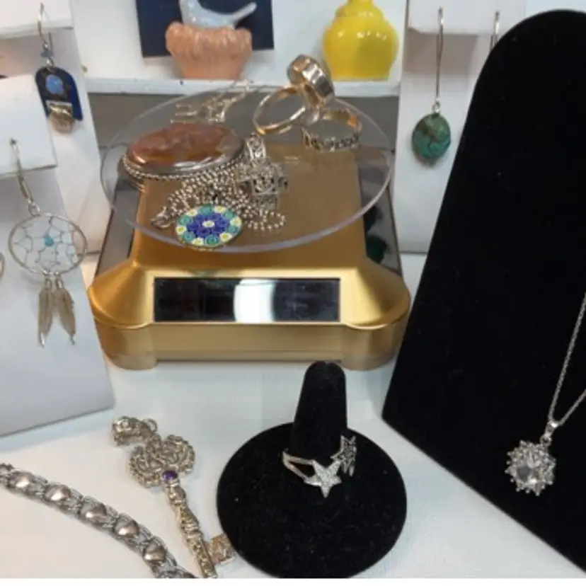 Welcome to our shop of mostly pre-owned and sometimes new jewelry treasures, trinket boxes, compacts - sometimes art and glass. Please follow us so you're in the know when we go live or add new items. Our curated beauties include a large selection of vintage pieces as well as many contemporary items. We also craft and design our own fun costume (and some fine) jewelry pieces, bookmarks, digital art and more in our small studio.