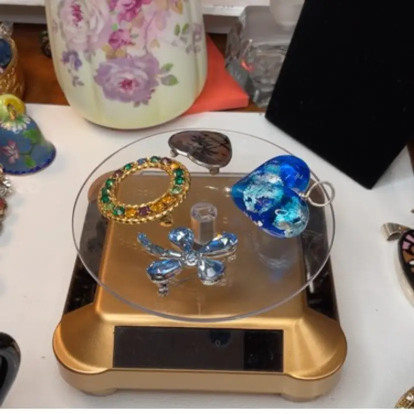 Welcome to our shop of mostly pre-owned and sometimes new jewelry treasures, trinket boxes, compacts - sometimes art and glass. Please follow us so you're in the know when we go live or add new items. Our curated beauties include a large selection of vintage pieces as well as many contemporary items. We also craft and design our own fun costume (and some fine) jewelry pieces, bookmarks, digital art and more in our small studio.