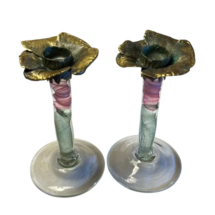 Made by Chris Salmon-Baker, owner of Old Hancock Glassworks in Antrim, NH Renowned glass artist, this is a rare set - no others currently listed.
