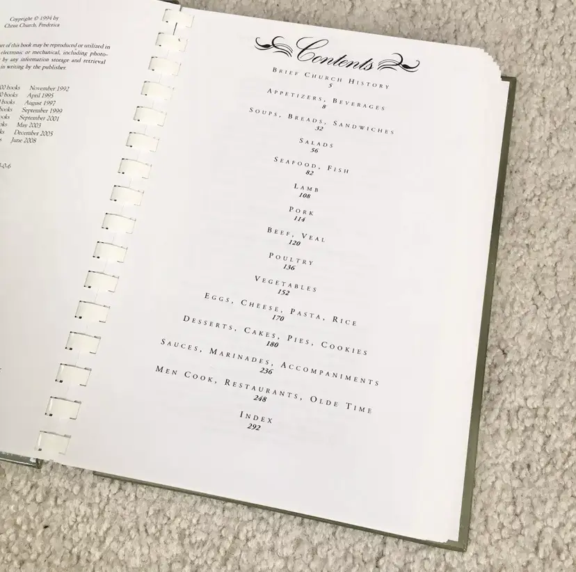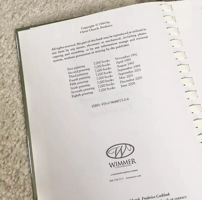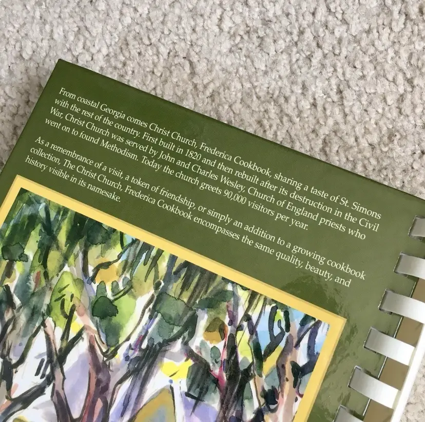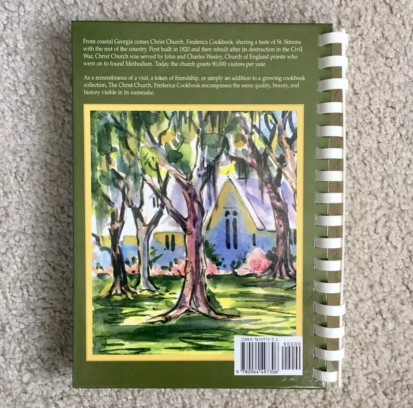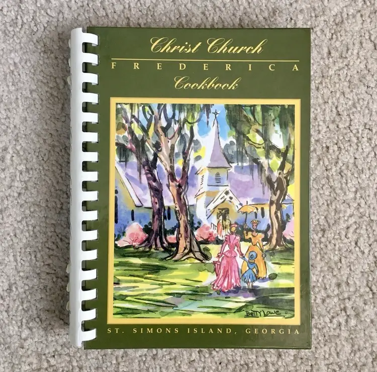 CHRIST CHURCH, FREDERICA COOKBOOK published by Episcopal Churchwomen Christ Church, Frederica in St. Simons Island, Georgia, 8th Printing, Copyright 2008, Hardcover, Spiral Bound, 300 pages. Best recipes for breads, desserts, soups, salads, main dishes, appetizers, vegetables, beverages, etc. Also includes Olde Time Recipes and Helpful Hints. Book is in LIKE NEW CONDITION. See pics for more details.