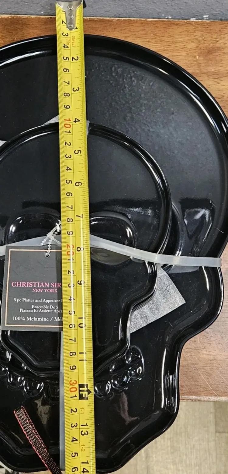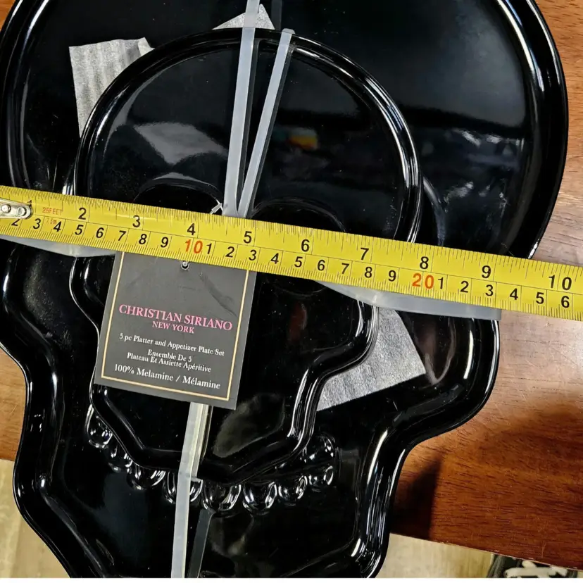 Christian Siriano Black Skull Platter & Appetizer Plate Set Made Of Melamine
