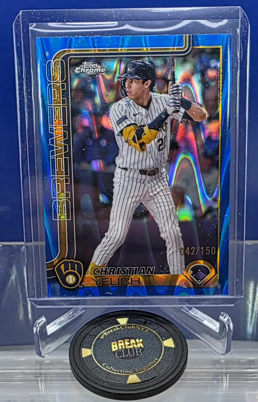 Christian Yelich 2025 Topps Chrome Blue Lava Refractor 042/150 #89 Milwaukee Brewers
