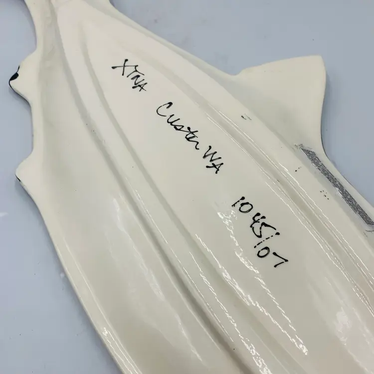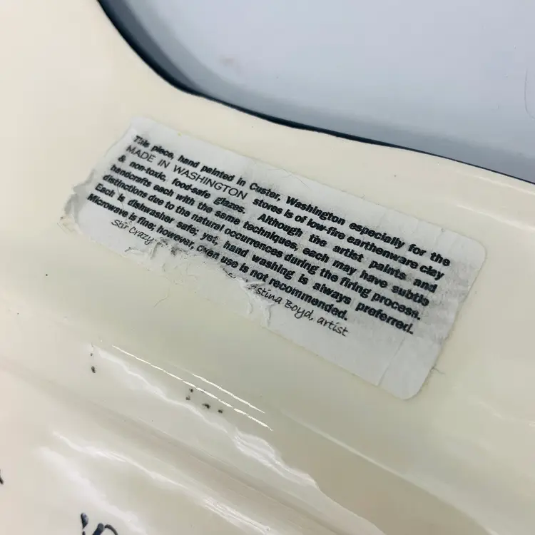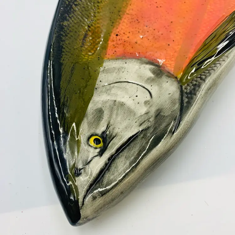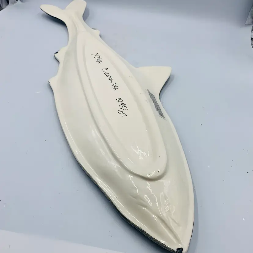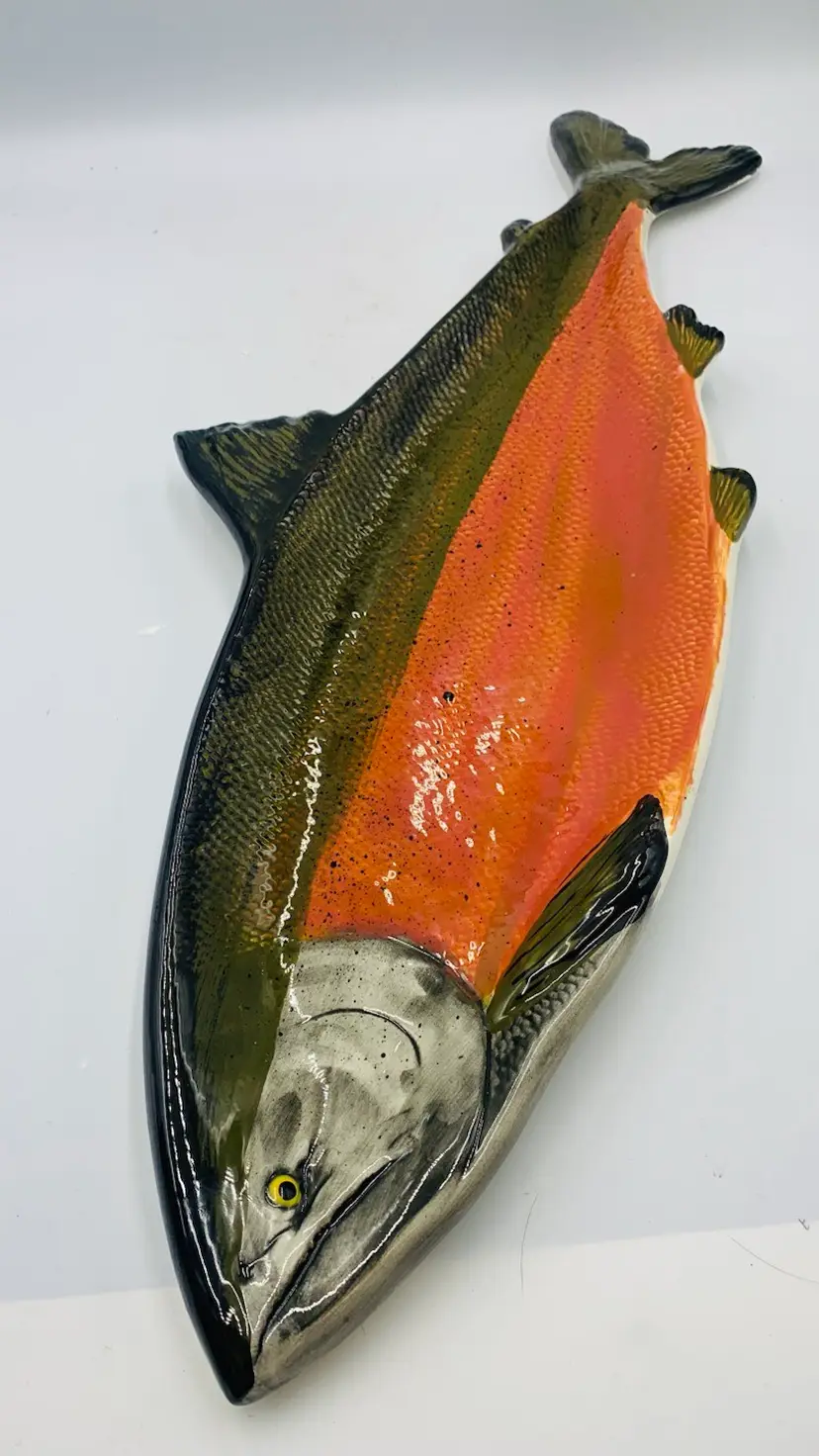 No chips or cracks. Perfect serving platter for salmon that also works as a wonderful decor piece either on a table or hung on a wall