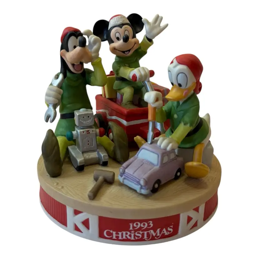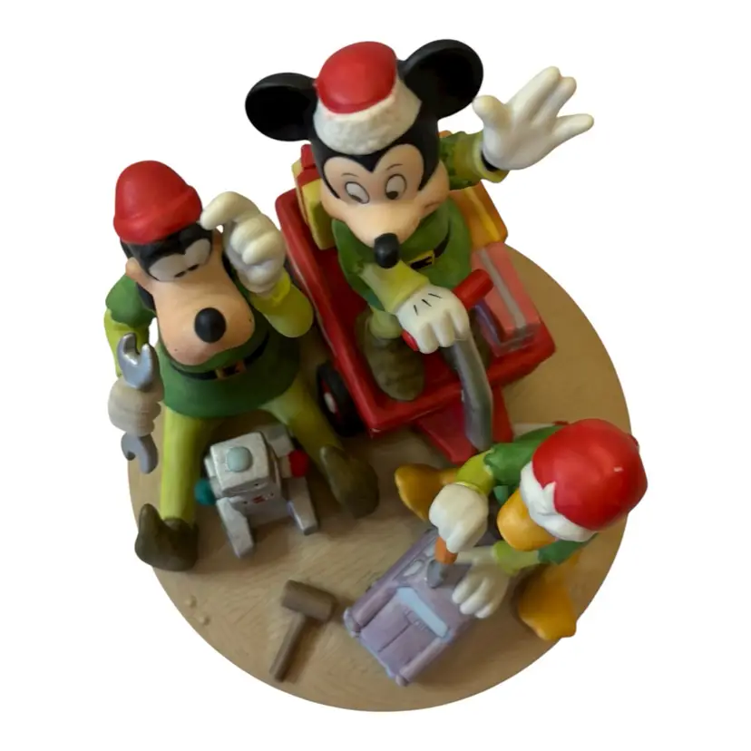 6” tall x 6.5”wide figurine featuring Micky, Goofy and Donald. In excellent vintage condition!