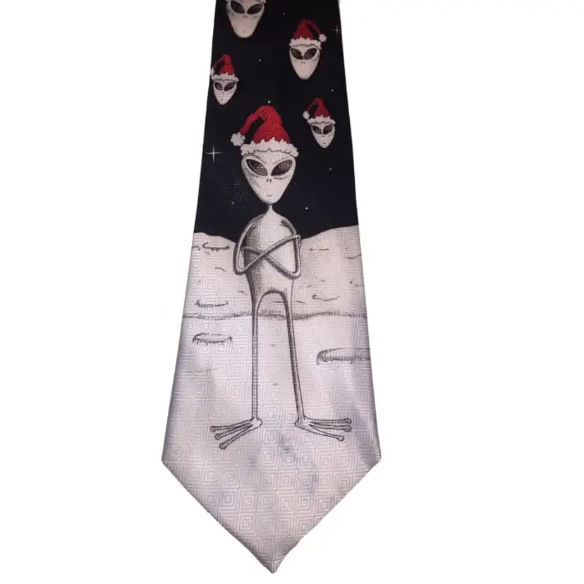 Christmas Holiday Unique Vintage Tie. Perfect for any Christmas or Holiday Party! Please see the photos of this Fun Tie. The pictured item is the actual item you will receive. Alien X-Mas Tie MT158